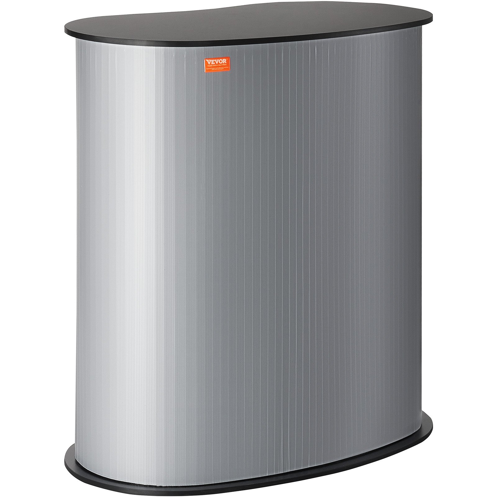 Thicker Premium PVC & Lacquered Wood Tabletop: Our portable tradeshow podium table boasts a robust PVC skirt board paired with a high-quality lacquered wood tabletop. It's all about reliability and security, whether you're indoors or outdoors.