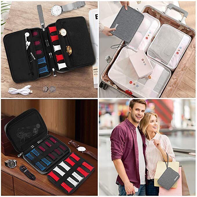 Zippered Pockets- Mesh and lining pockets can store your smartwatch, charging cable, cases, watch straps or other accessories which helps keep your all watch band accessories neatly organized.