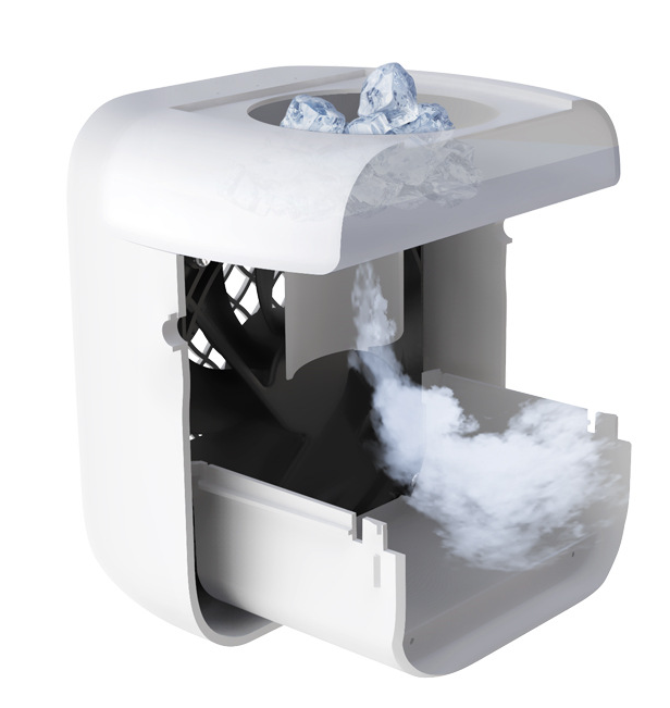 3. Short press the start button, the fan and spray will start at the same time (the first fan is activated by default), short press again to adjust the fan position, press once to increase one gear, when it reaches the third gear, press the button again to turn off the fan and spray .Three-color indicator light shows the gear position, the first gear is red, the second gear is green, and the third gear is blue; the pure white indicator is the spray working indicator, and the pure white indicator is on when the spray is started.
