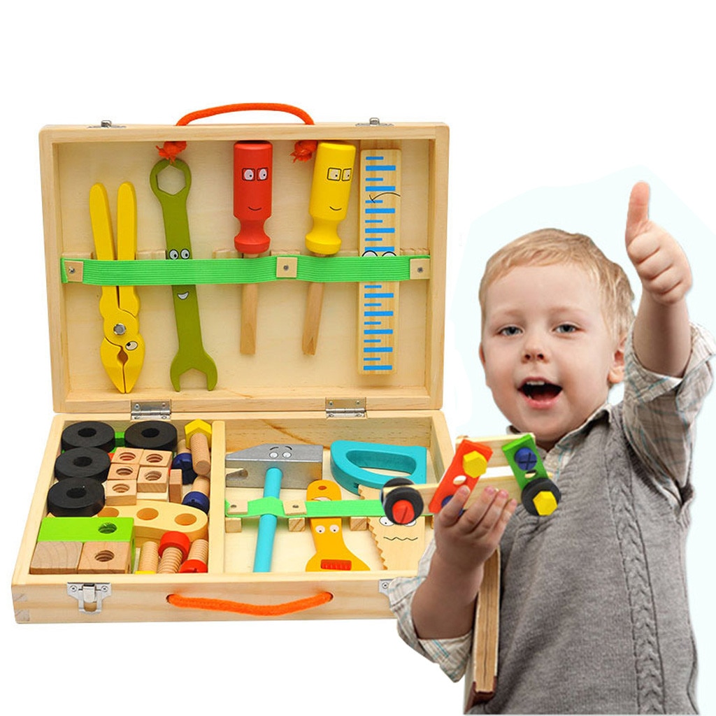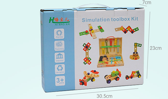 Applicable population: UnlimitedDIY toolbox featuresPacking: plastic boxToy material: wooden