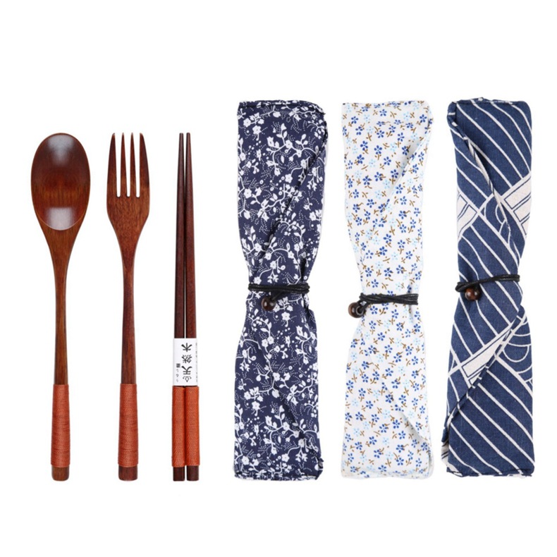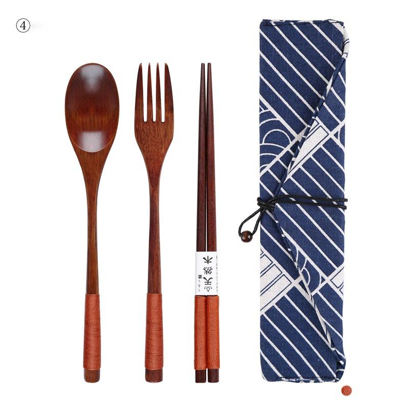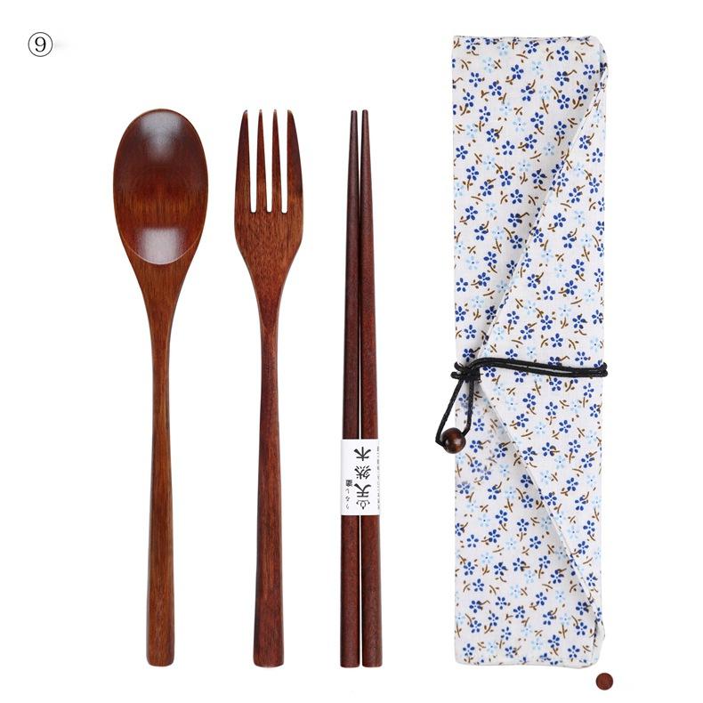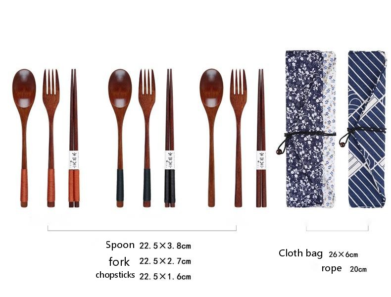 Material woodPolishing process hemp wheel lightSet list fork spoon chopsticks + cloth bag