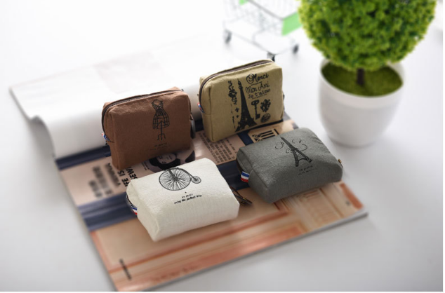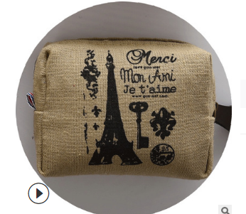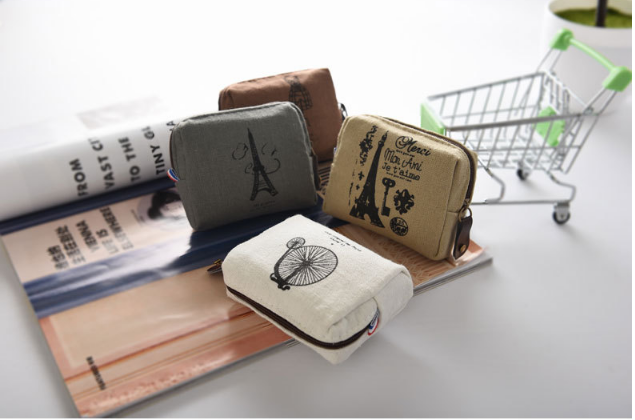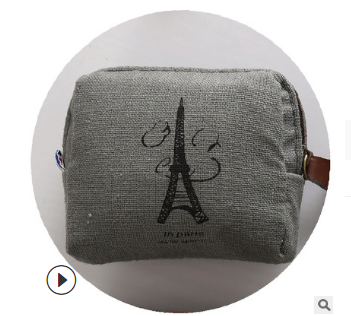 Product name: Vintage Paris coin purseProduct material: canvasProduct size: 9*8*2Product color: beige bicycle, coffee tower key, dark gray tower, dark coffee hanger