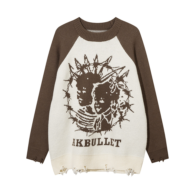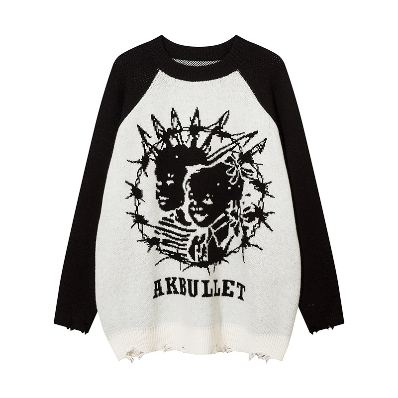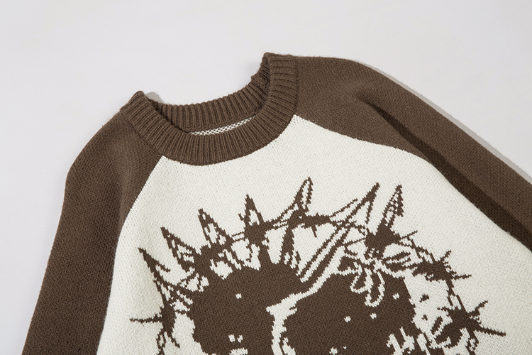 Portrait Jacquard Round Neck Sweater For Men