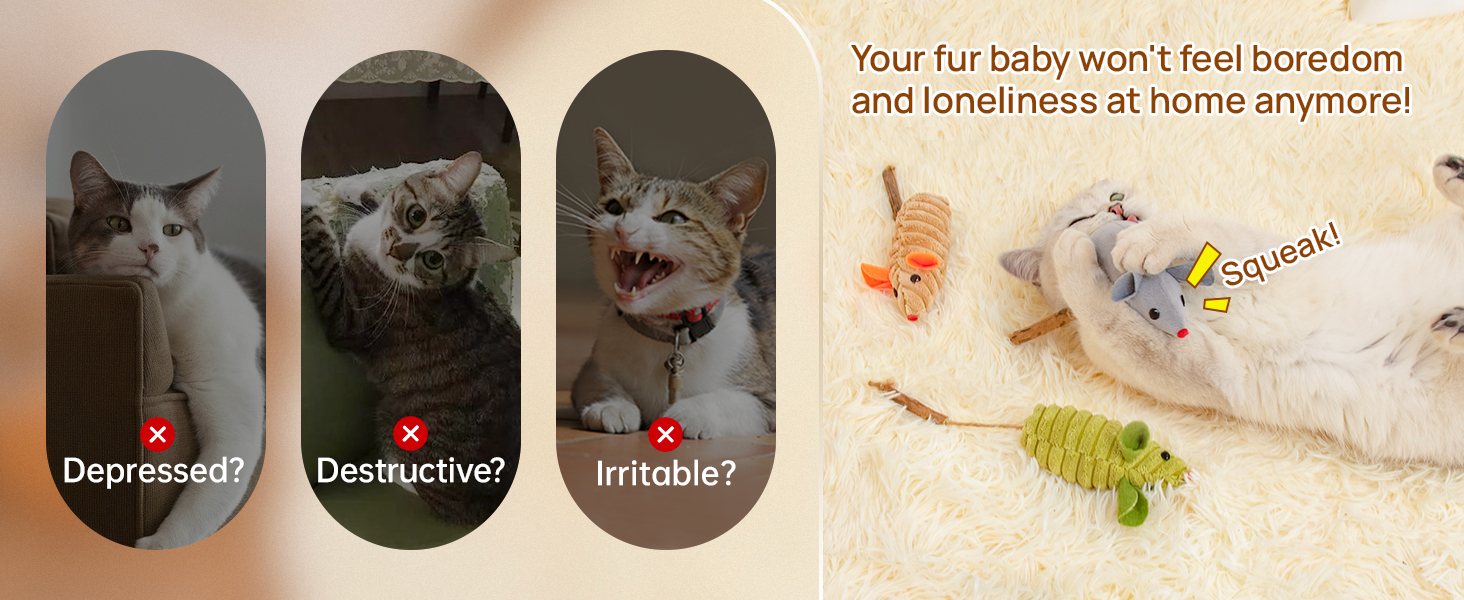Care for Oral Health: When cats play with these cat mice toys, they effectively eliminate dental plaque and tartar, helps clear off fetid breath and improve oral health for your furry babies. The healthier your cats are, the closer you get together