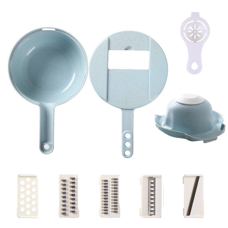 Product set: bottom basin + water filter basket + vegetable cutting board + 4 blades + dust cover + hand guard