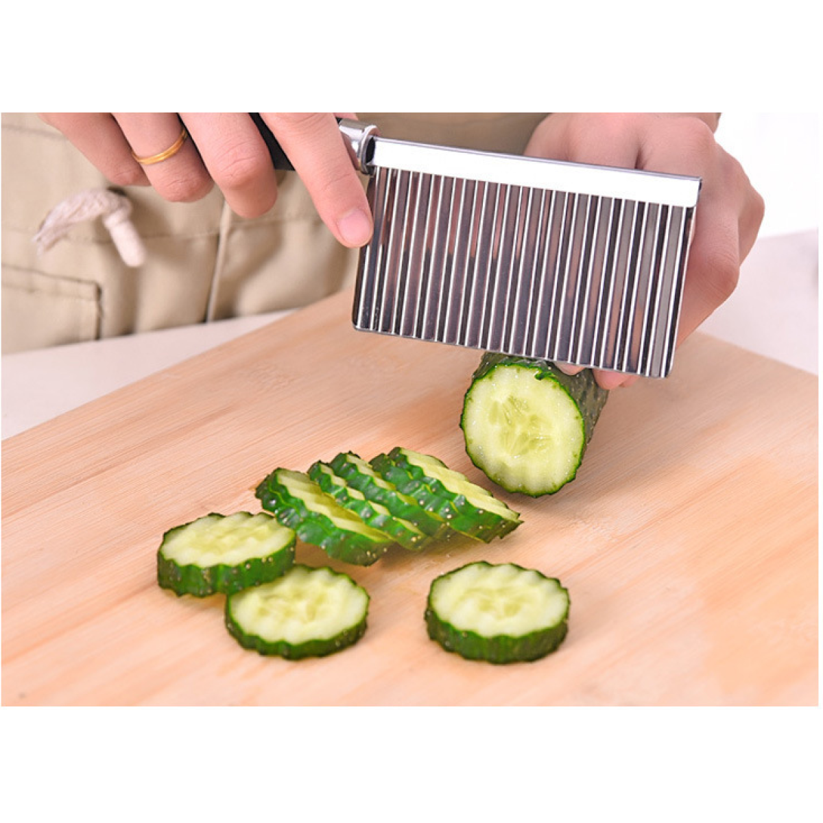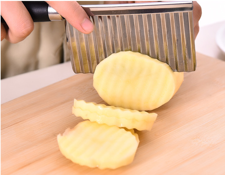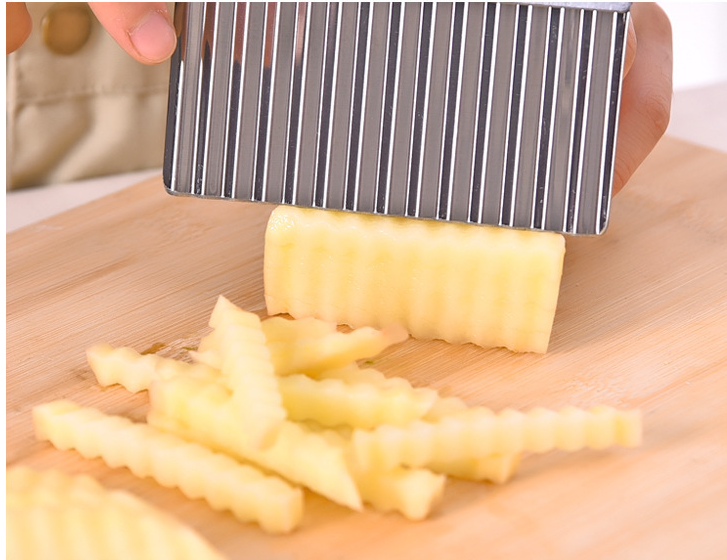 Wavy knife for cutting potato shreds