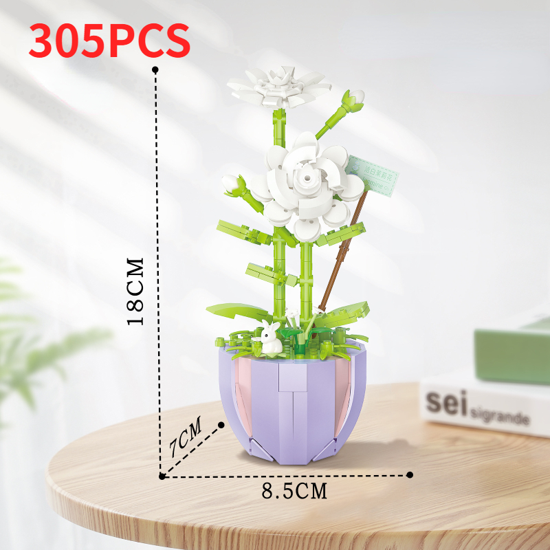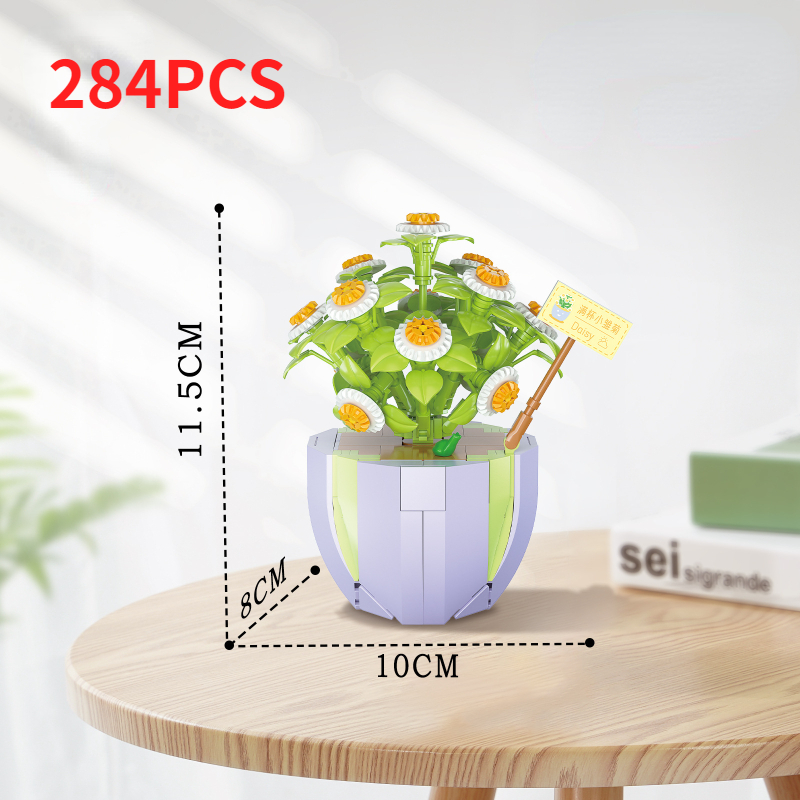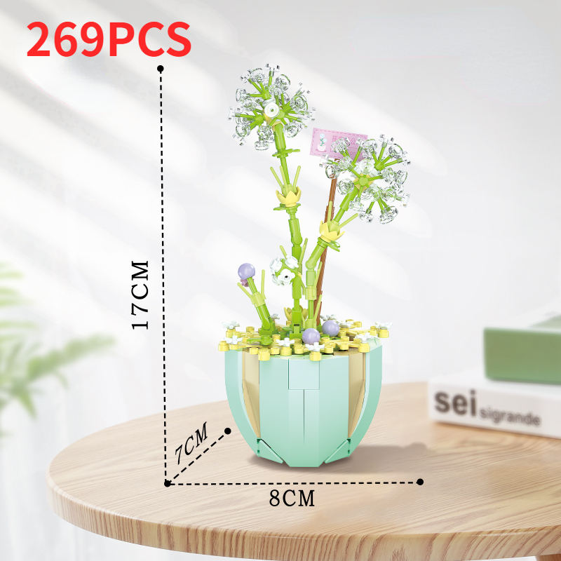 Size: 2080 Blooming rosa multiflora 330 granules (8*10.5*16.5cm),2081 full cup Daisy 284 granules (8*10*11.5cm),2082 chubby cactus 444 granules (7*9.5*12cm),2083 elegant lily of the valley 287 granules (11 * 12 cm) 2084 Flesh Lotus Seat 312 Granules (7.5*8*11cm),2085 Yuanqiju Agatha 388 Granules (9*10.5*17cm),2086 Bulbous continentalis 329 Granules (8*8.5*20cm),2087 Swaying Dandelion 269 Granules (7 * 8 * 17cm),
