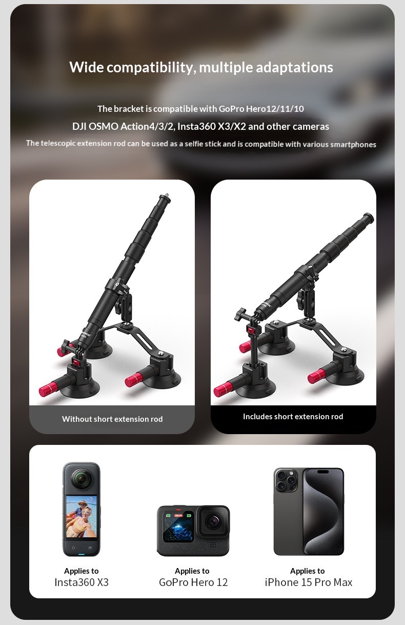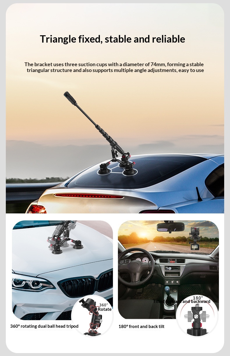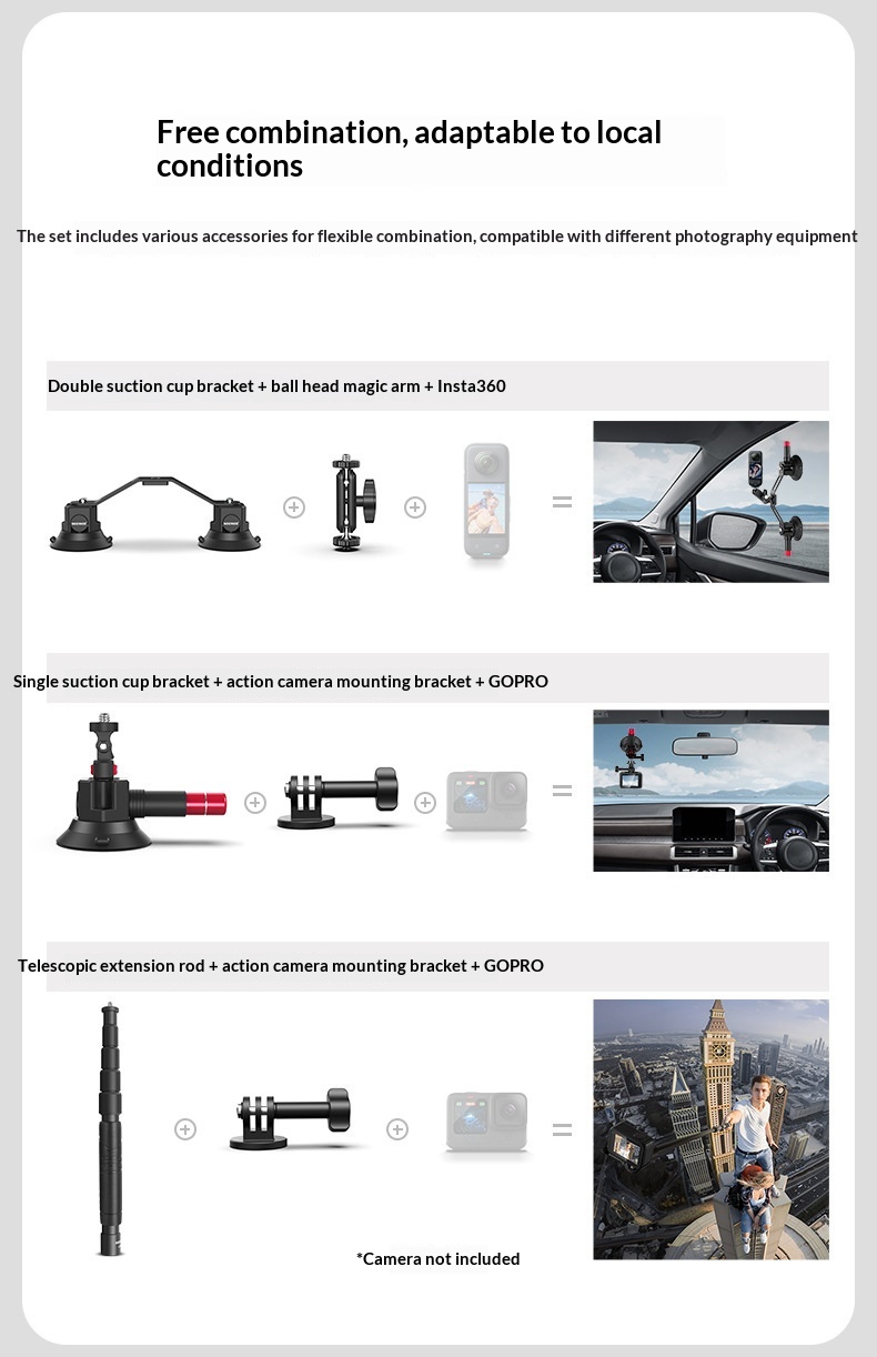 Product information:Style: Action Camera Extension Pole with 3 Suction Cups Material: Aluminum Alloy Color: Black
