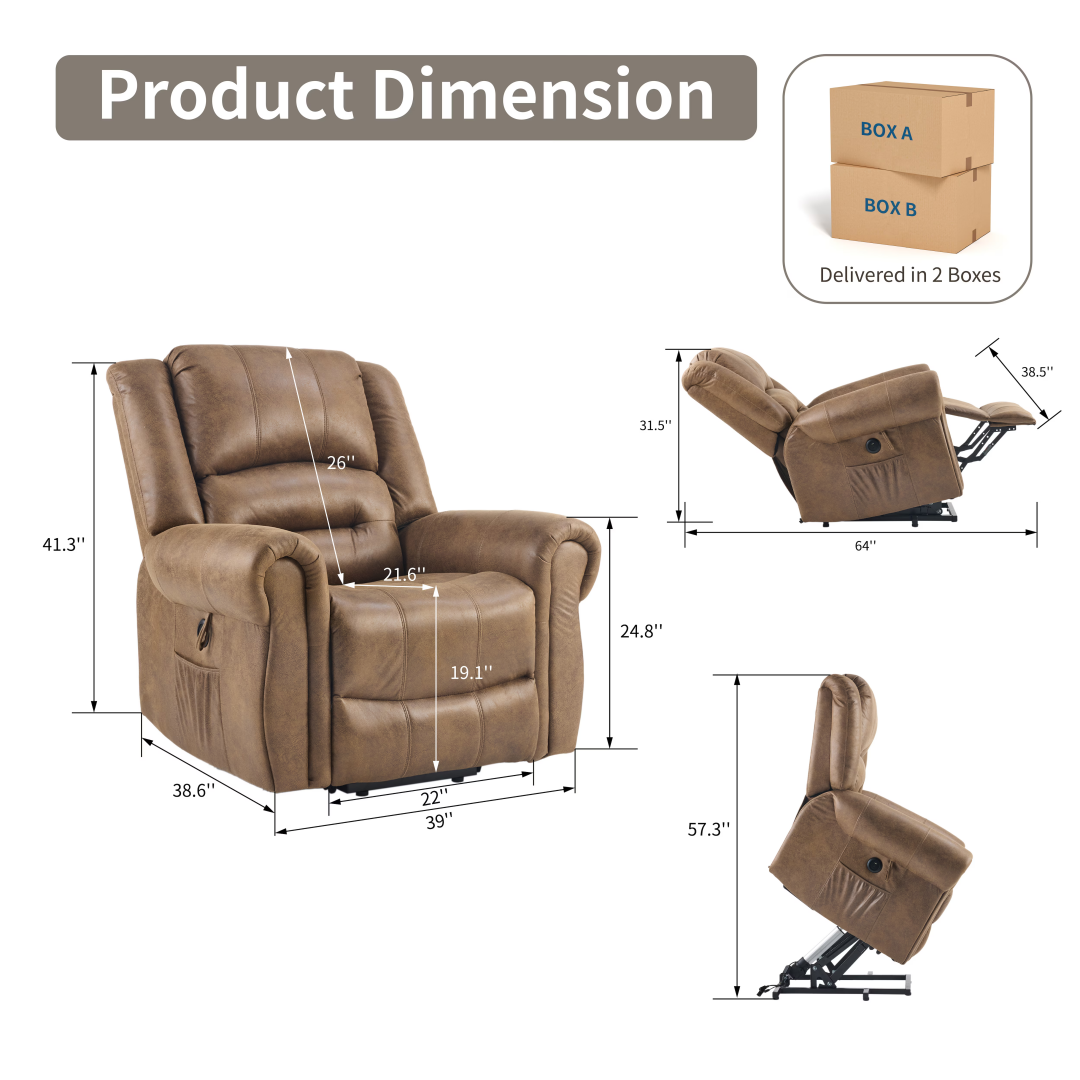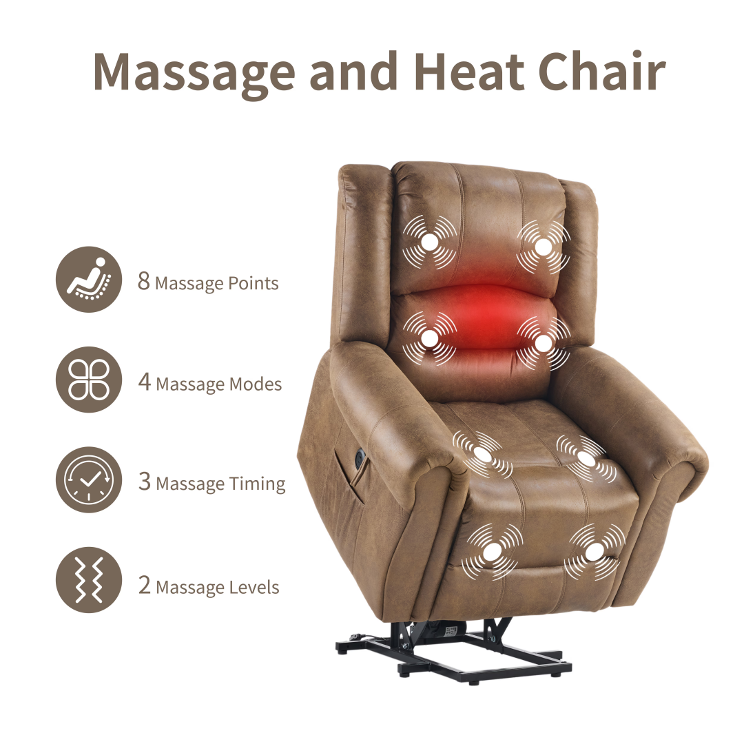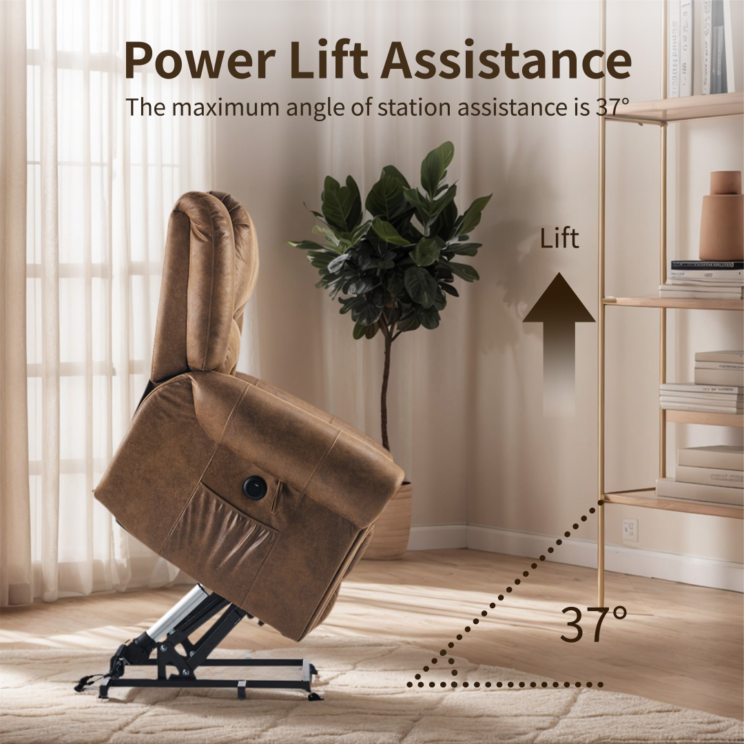 Product Name: Power Lift Recliner Chair with Massage & Heat for Elderly, Single Motor Electric Lift Chair, Tech Fabric Upholstery, 8-Point Massage & 8-Point Heating, USB & Type-C Ports, Side Pockets,Brown