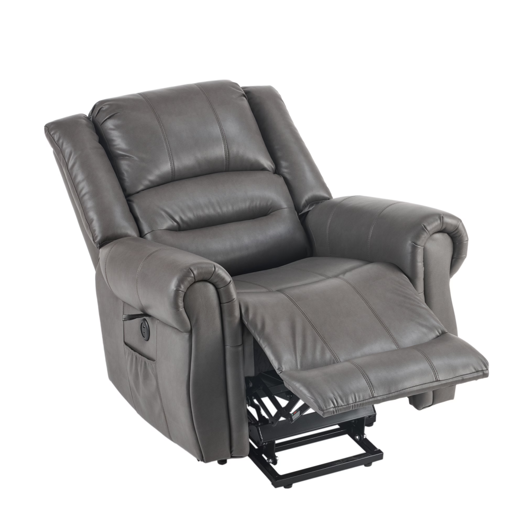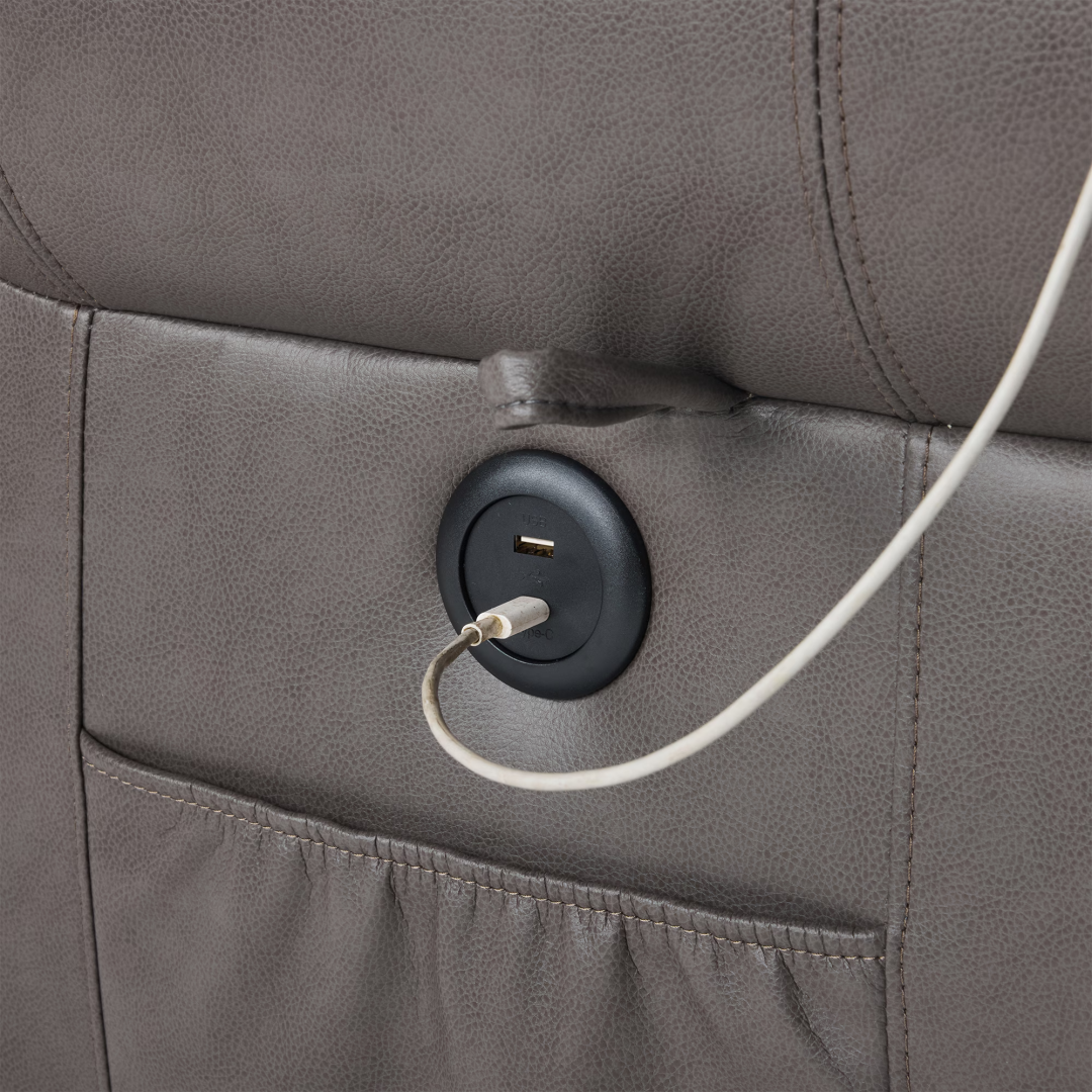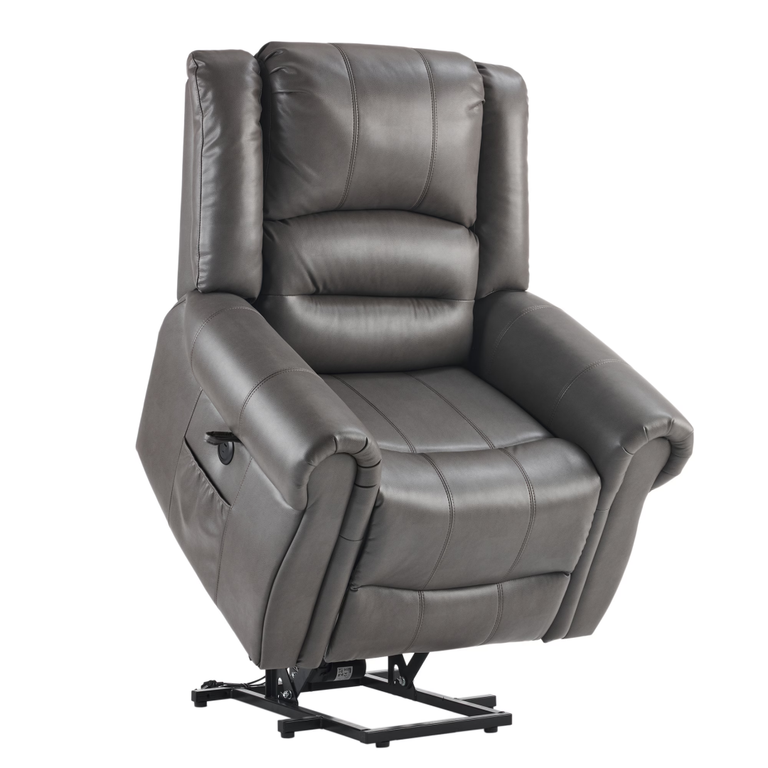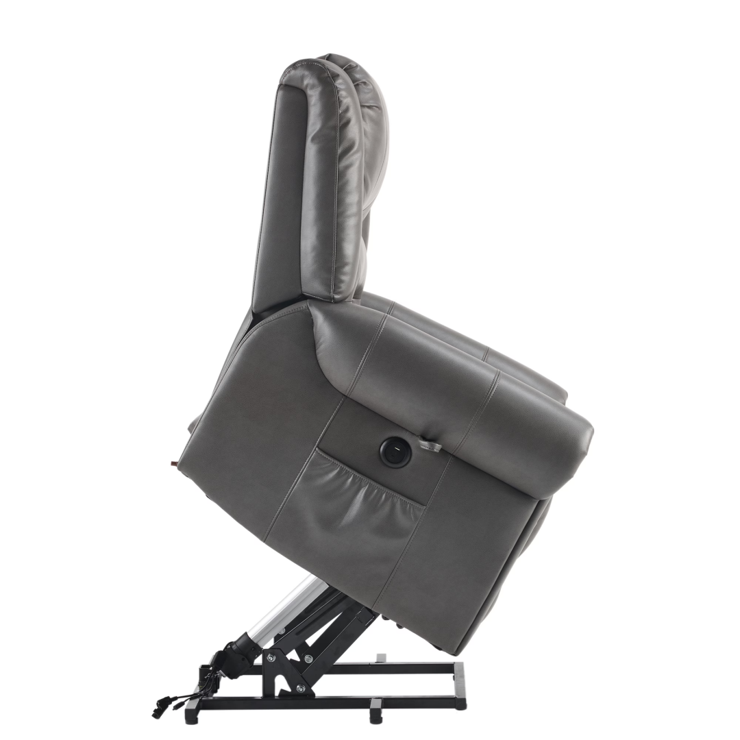 Product Name: Power Lift Recliner Chair with Massage & Heat, Single Motor Lift Chair, Breathable PU Faux Leather, USB & Type-C, Side Pockets, Grey