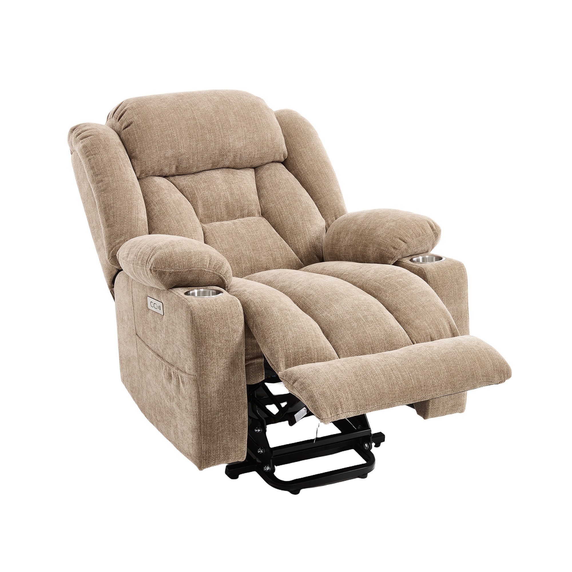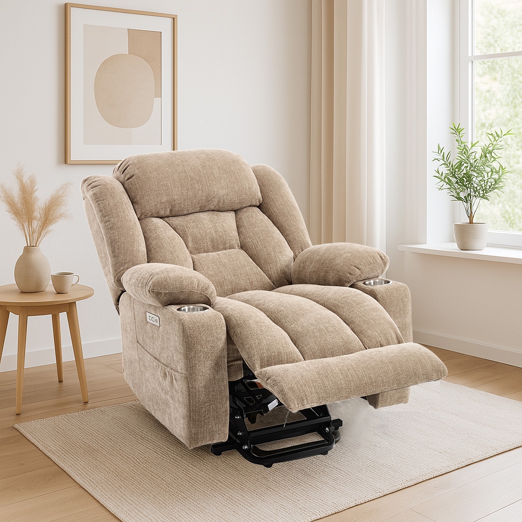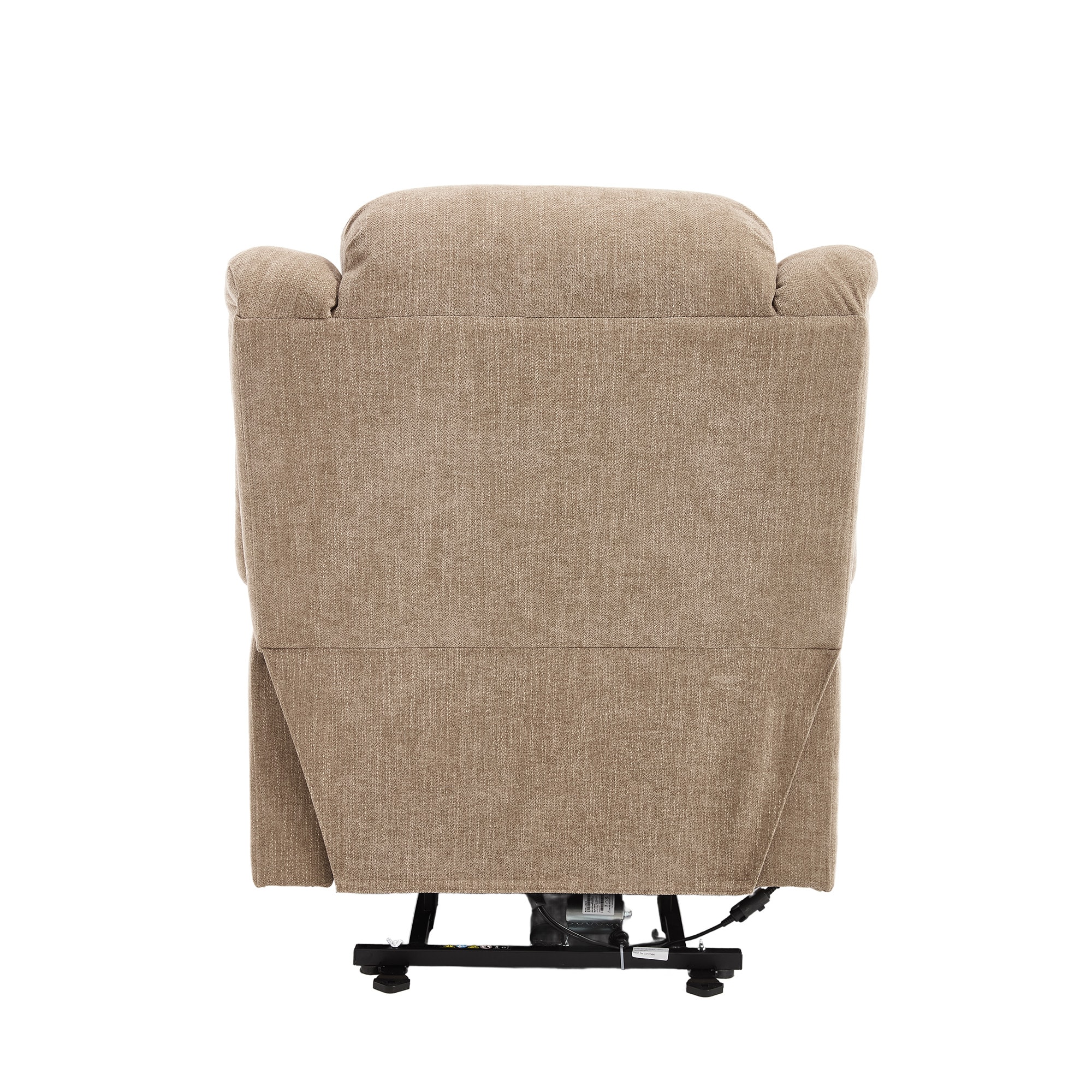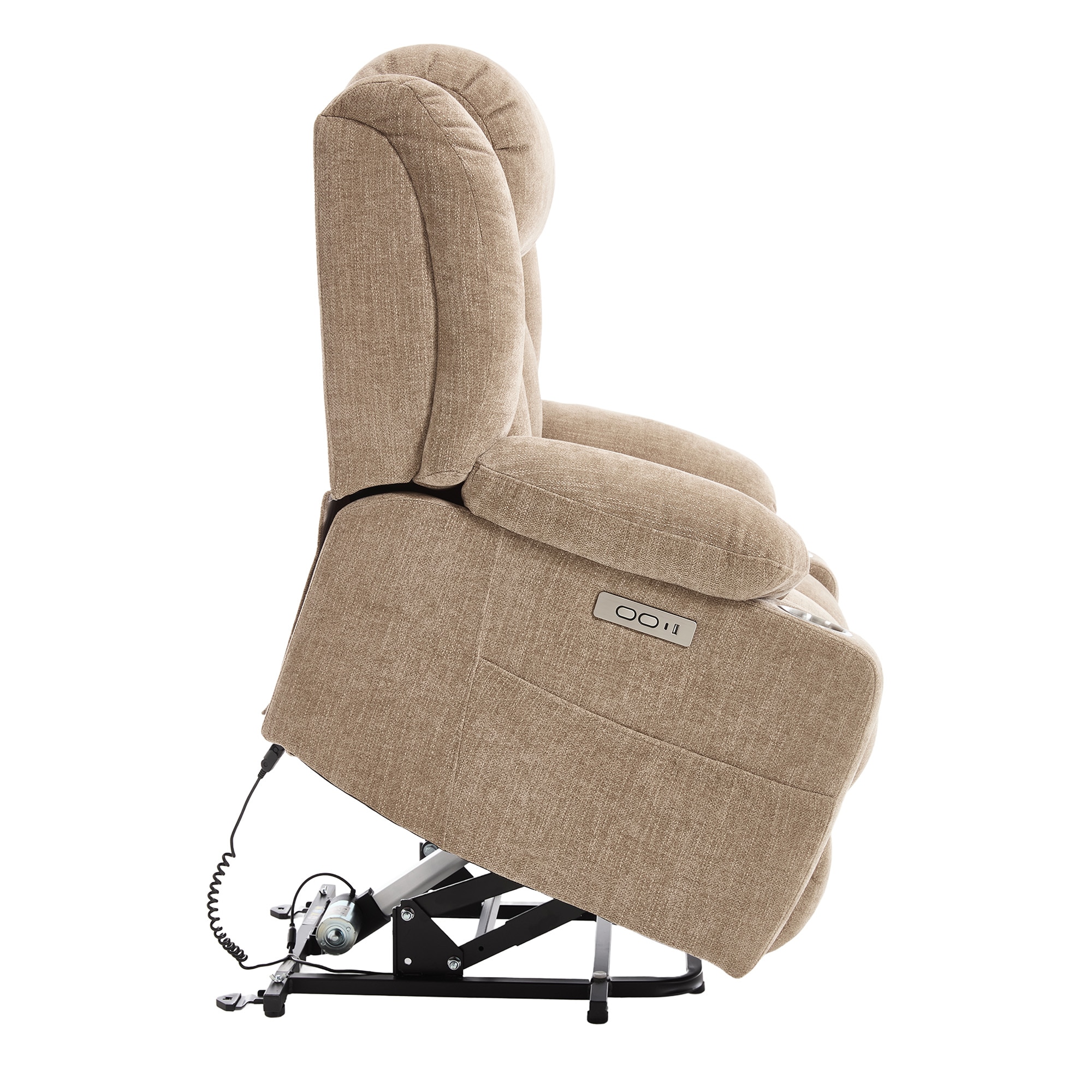 Product Name: Power Lift Recliner Chair with Massage & Heat, Single Motor Lift Chair, Chenille Fabric Upholstery, USB/Type-C, Cup Holders, Side Pockets, Light Brown