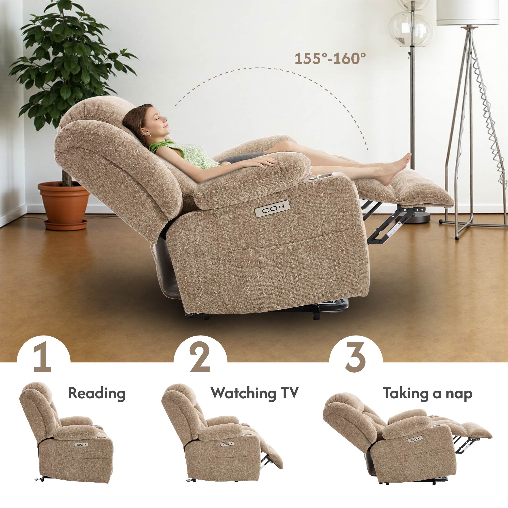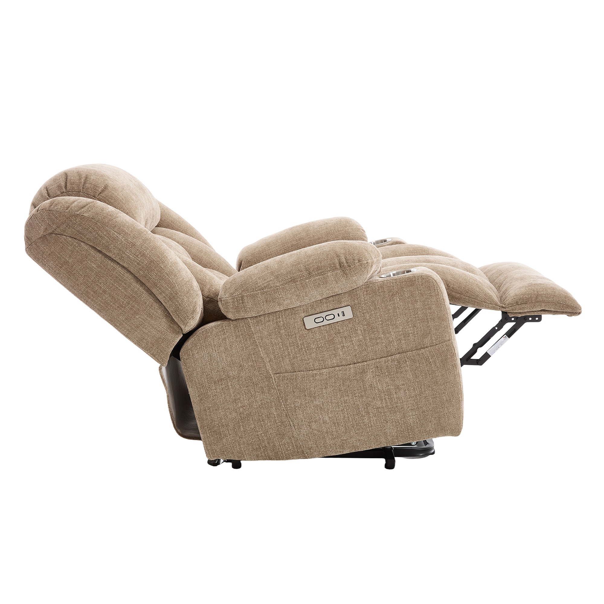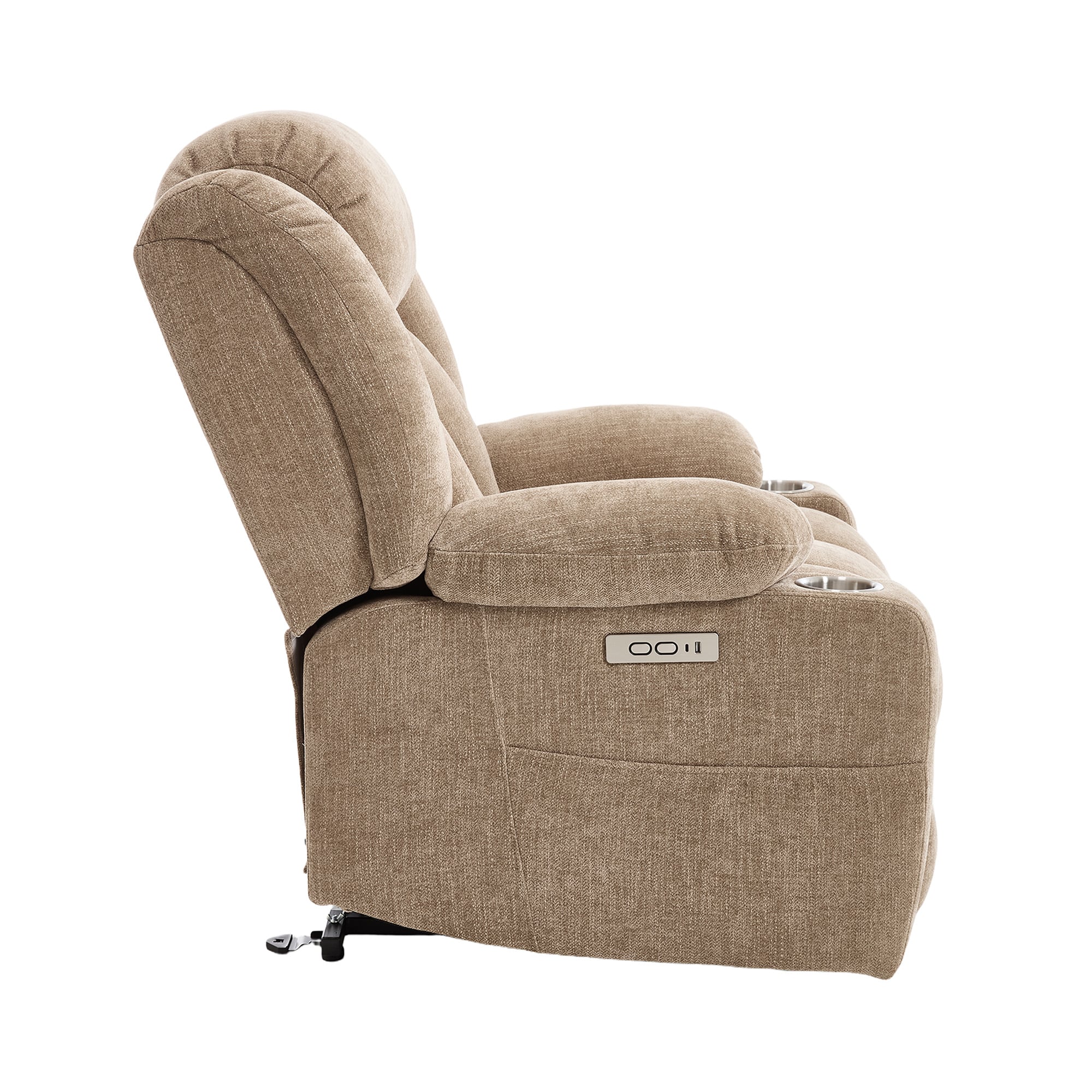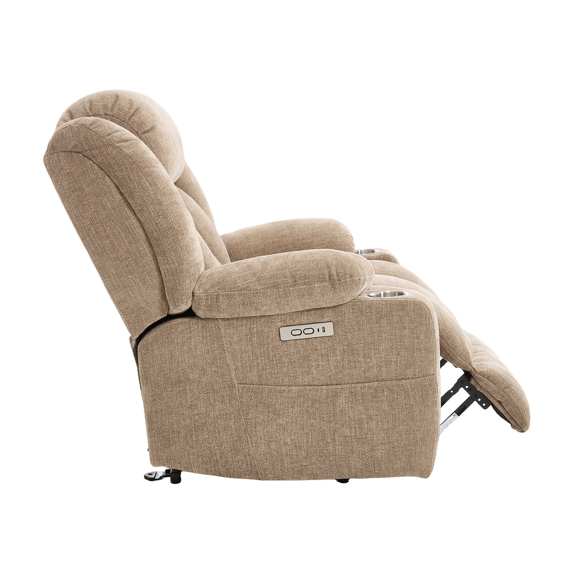 Product Name: Power Lift Recliner Chair with Massage & Heat, Single Motor Lift Chair, Chenille Fabric Upholstery, USB/Type-C, Cup Holders, Side Pockets, Light Brown
