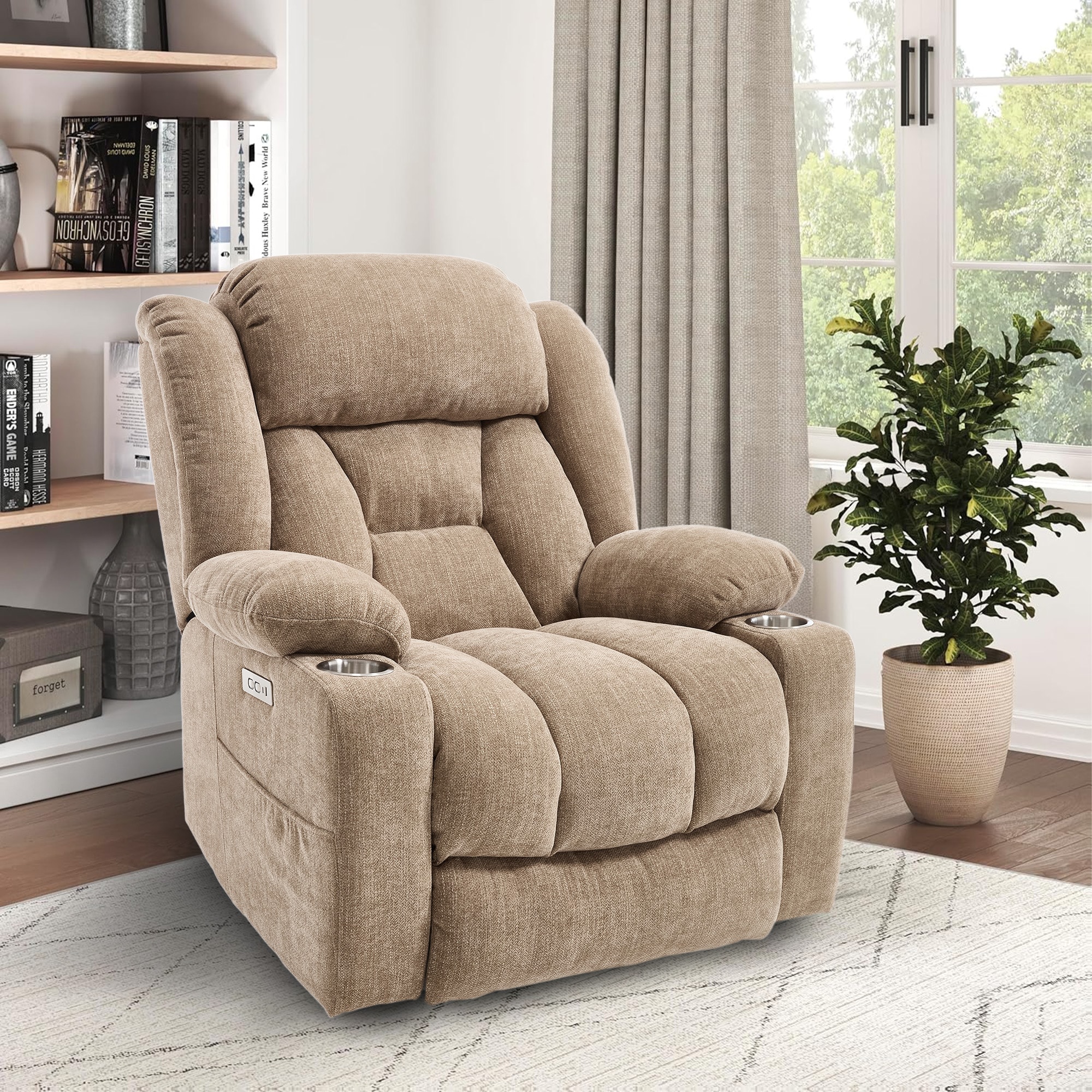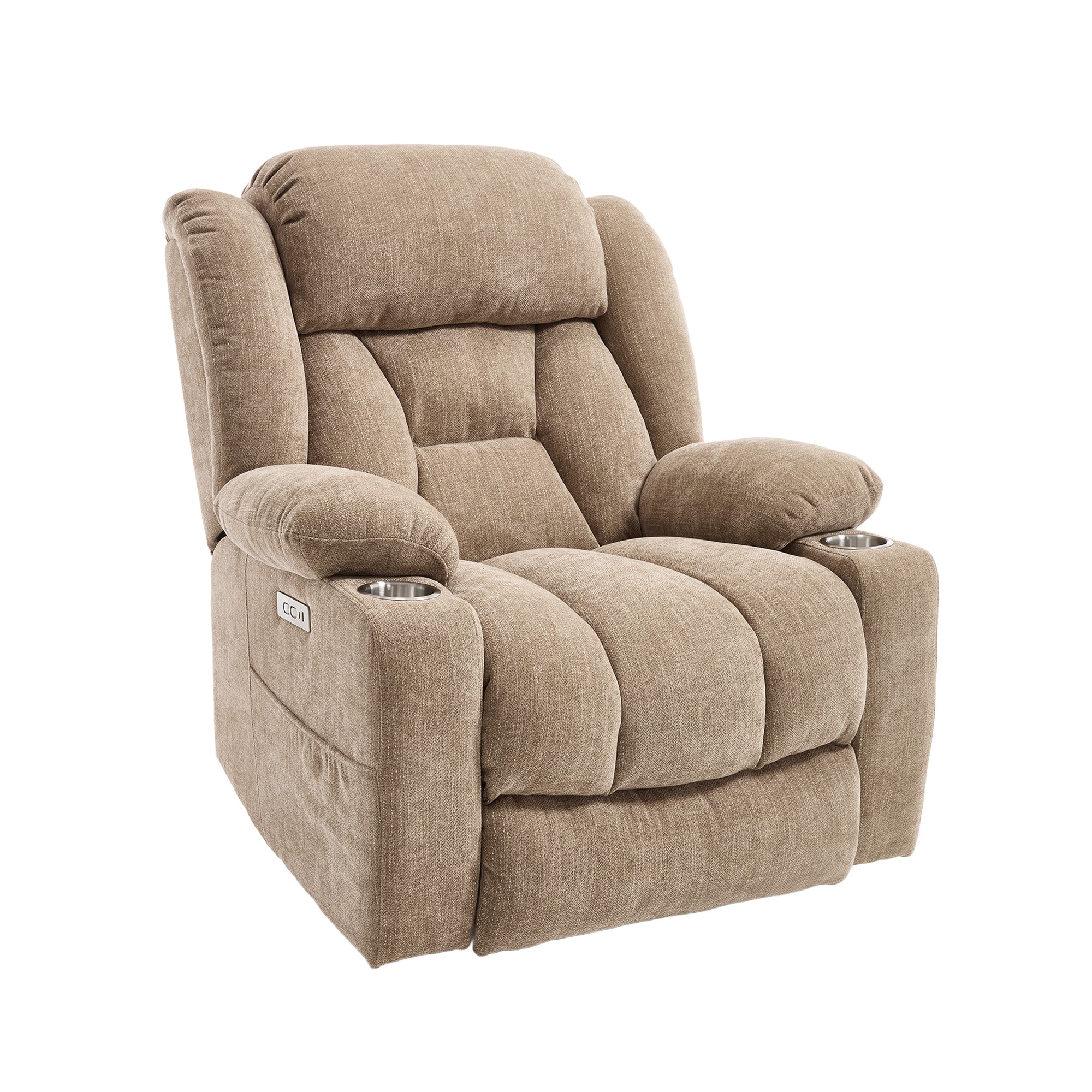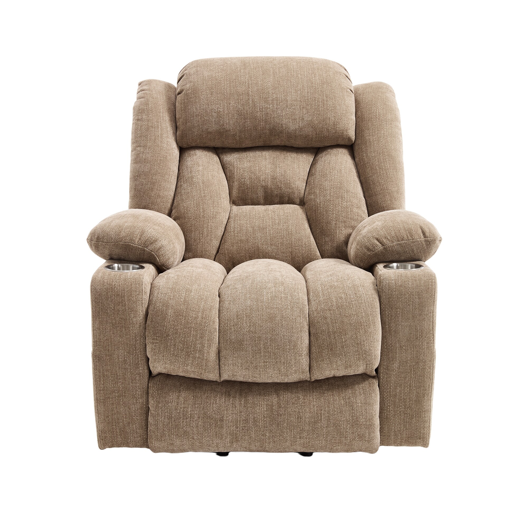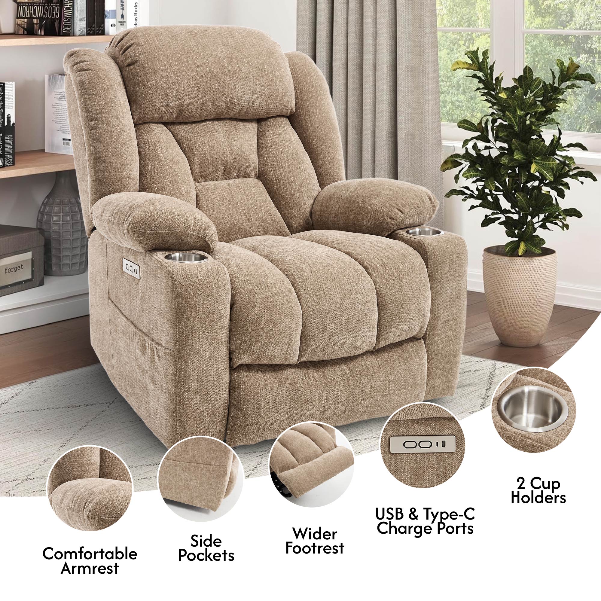 Product Name: Power Lift Recliner Chair with Massage & Heat, Single Motor Lift Chair, Chenille Fabric Upholstery, USB/Type-C, Cup Holders, Side Pockets, Light Brown