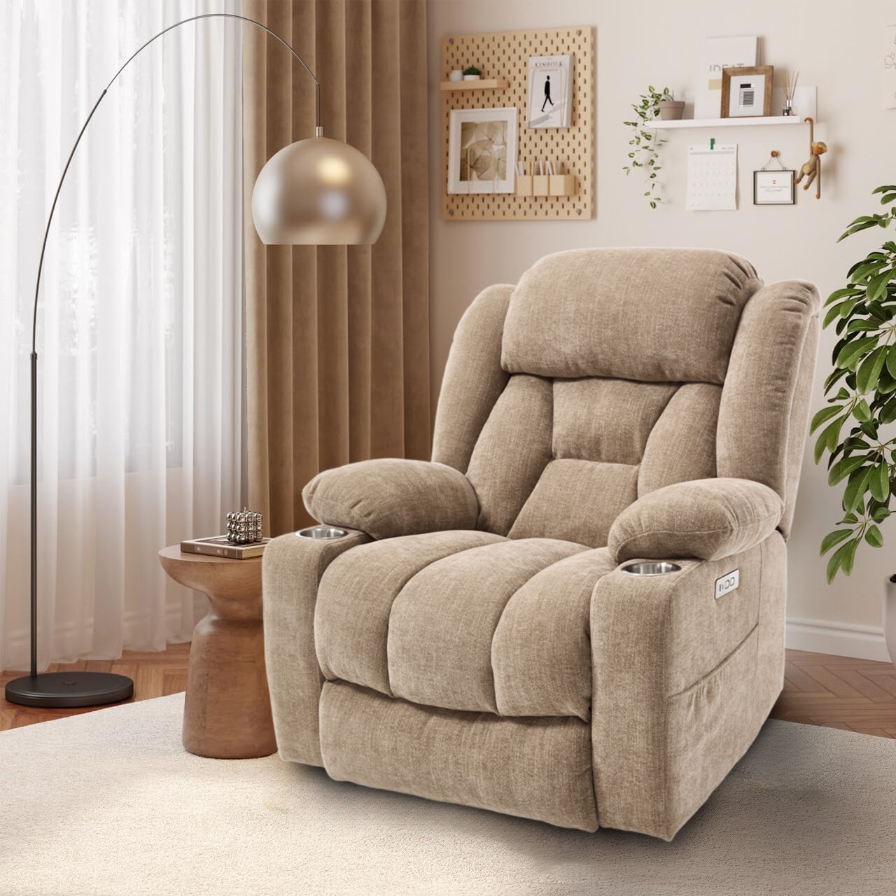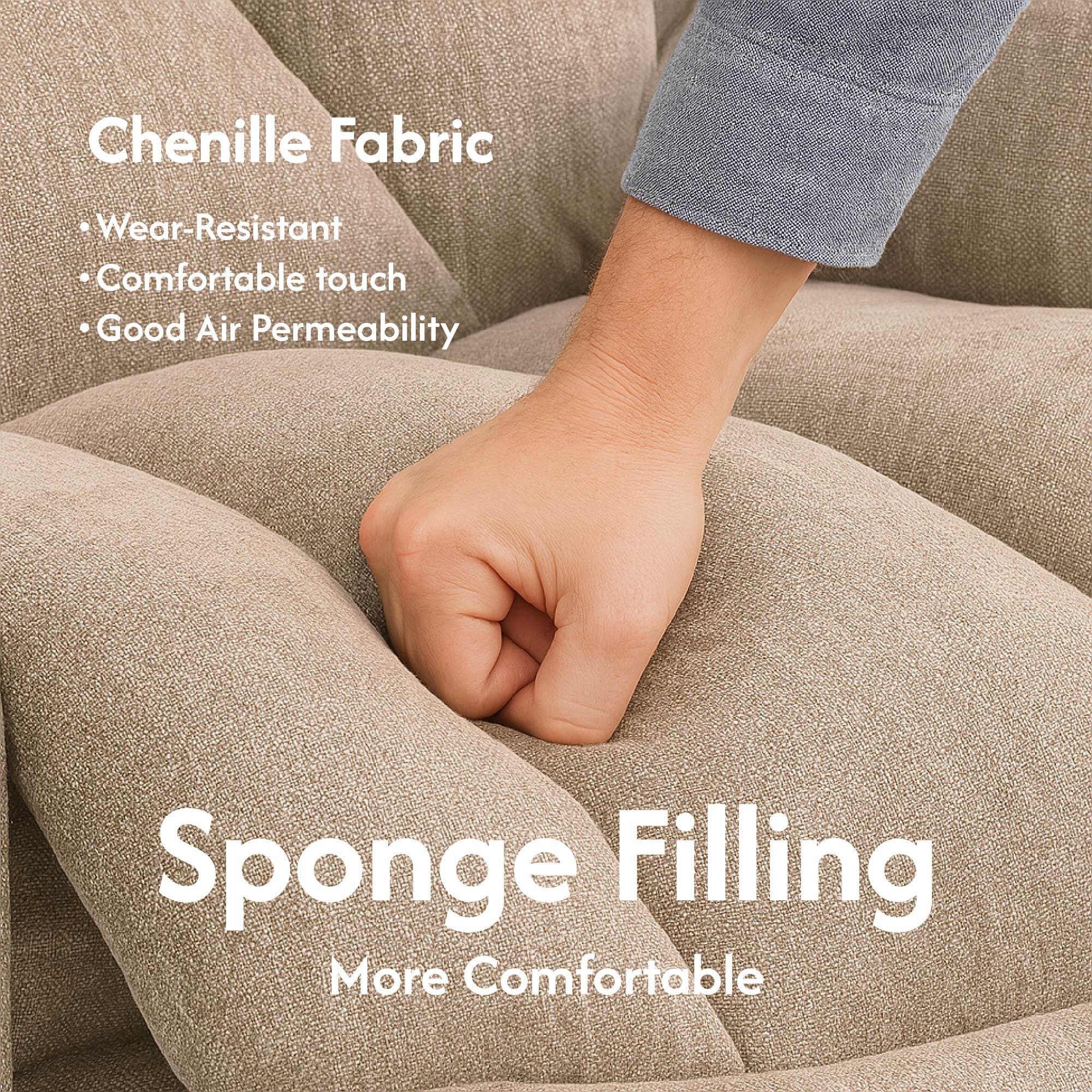 Upholstered in skin-friendly chenille fabric, this recliner delivers a plush and cozy feel while remaining durable for long-term use. Thick padding provides balanced support for sitting or reclining, and the reinforced frame ensures stability for daily use.