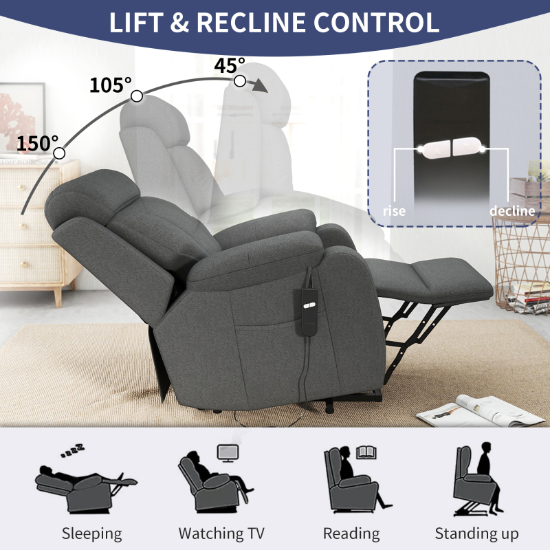 Product Name:Power Lift Recliner for Elderly, Lift Chair Recliners for Small Spaces, Electric Recliner Chairs for Seniors, Remote Control, Adjustable, Side Pocket (Dark Gray+ Snowflake Velvet)