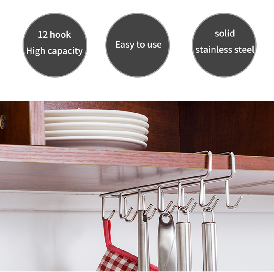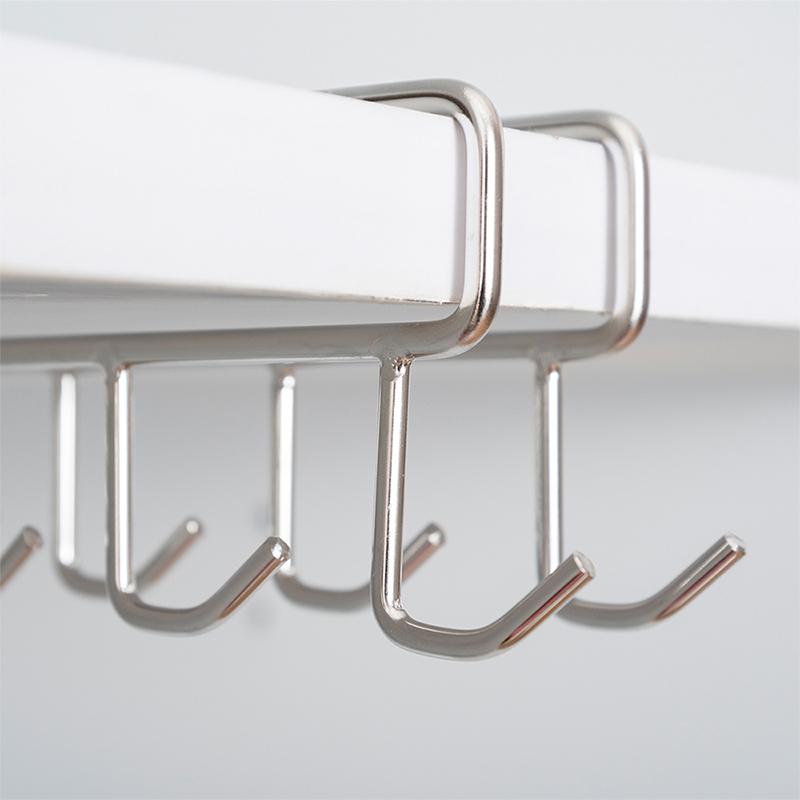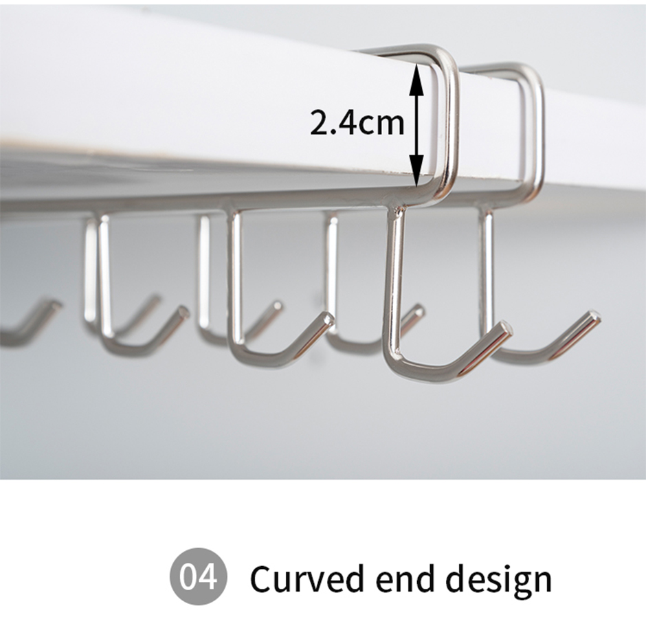 1. Free up precious cabinet space with this under-shelf mug holder. Made of premium stainless steel, its sturdy and simple design will add a modern touch to your kitchen.