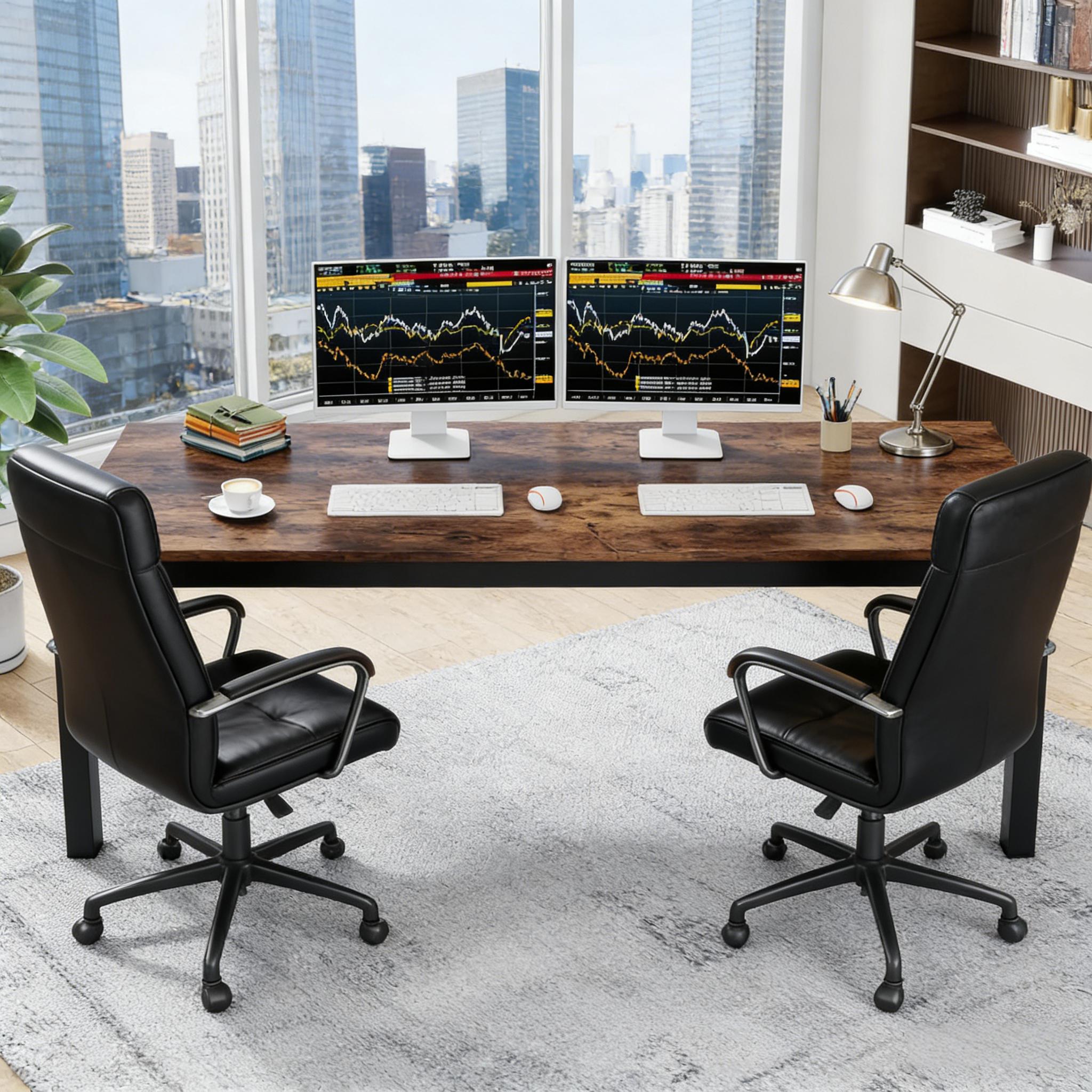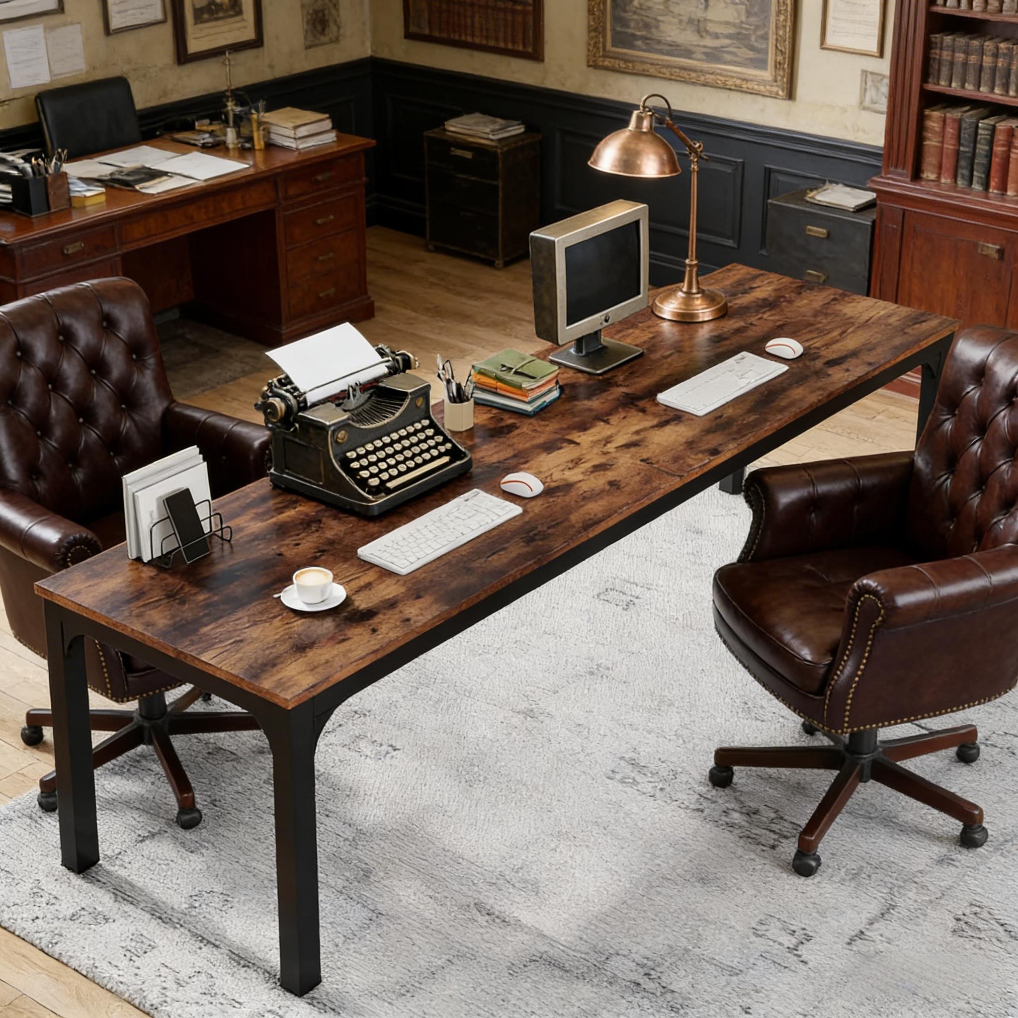 Important Reminder!!! 1) Attention: All products in our store do not support Canada self pickup ordering. Please do not create shipping labels for Canada. Our American products do not support self pickup to Canada 2)We do not ship to Alaska, Hawaii, US protectorates (e.g., Puerto Rico), P.O. boxes, or APO/FPO addresse 3)We don’t accept non-defective remorse returns Robust Construction - The office desk's panel is made of a 0.59" thick MDF Board, and the legs are built with heavy-duty powder-coated iron pipes measuring 1.96" by 1.96" in width. This construction offers industrial-style stability and durability, with a weight capacity of up to 200lbs. Expansive Workspace - The Extra Long Office Desk measures 78.74"W x 27.55"D x 29.52"H. This large desktop provides ample space for your laptop, phone, books, files, and more, keeping everything you need for efficient home office work within your reach. Dual Workspace Desk - This double workstation can easily accommodate two computers simultaneously. Two people can work side by side, independently, without disruptions, making it ideal for roommates or collaborative work. Simplistic Industrial Design - The office desk features a minimalist modern design with no additional decor, fulfilling your home office furniture needs. The adjustable foot pads aid in eliminating any wobbles and protect your floors from scrapes. Quick Assembly & Easy Maintenance - The desk comes with tools and instructions for quick and straightforward assembly. Its smooth surface allows for easy cleaning, letting you wipe off any dirty stains effortlessly.