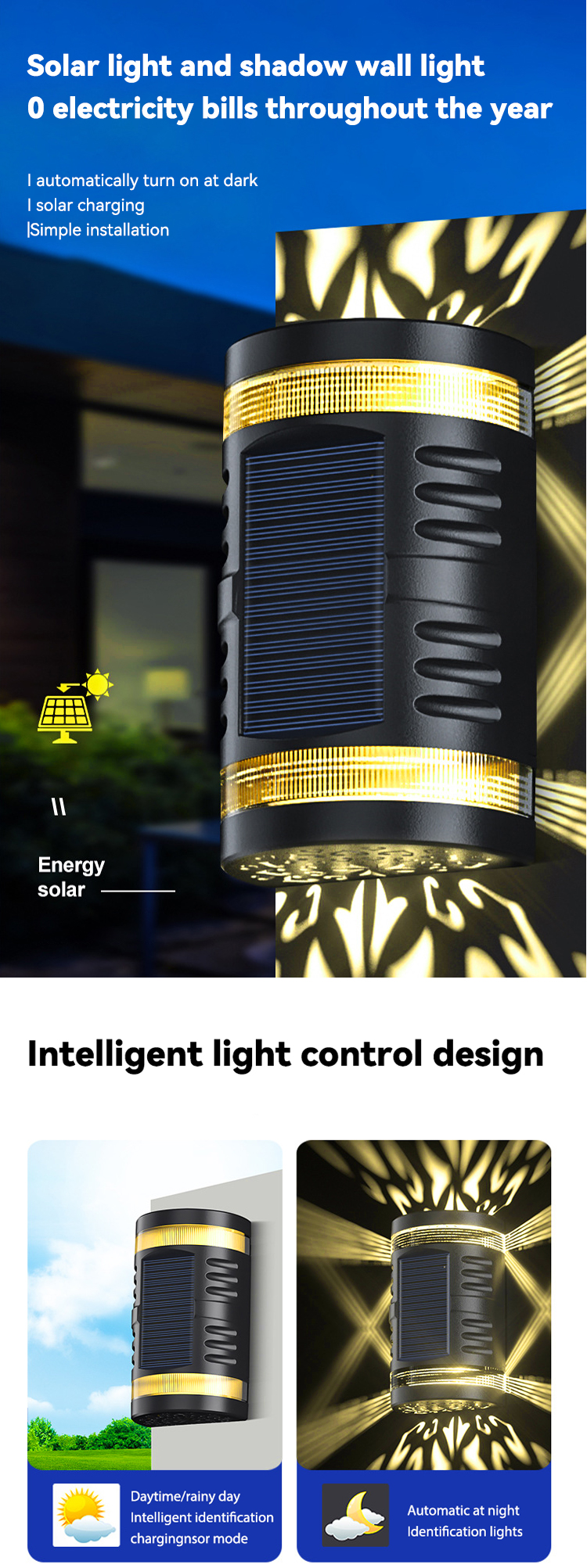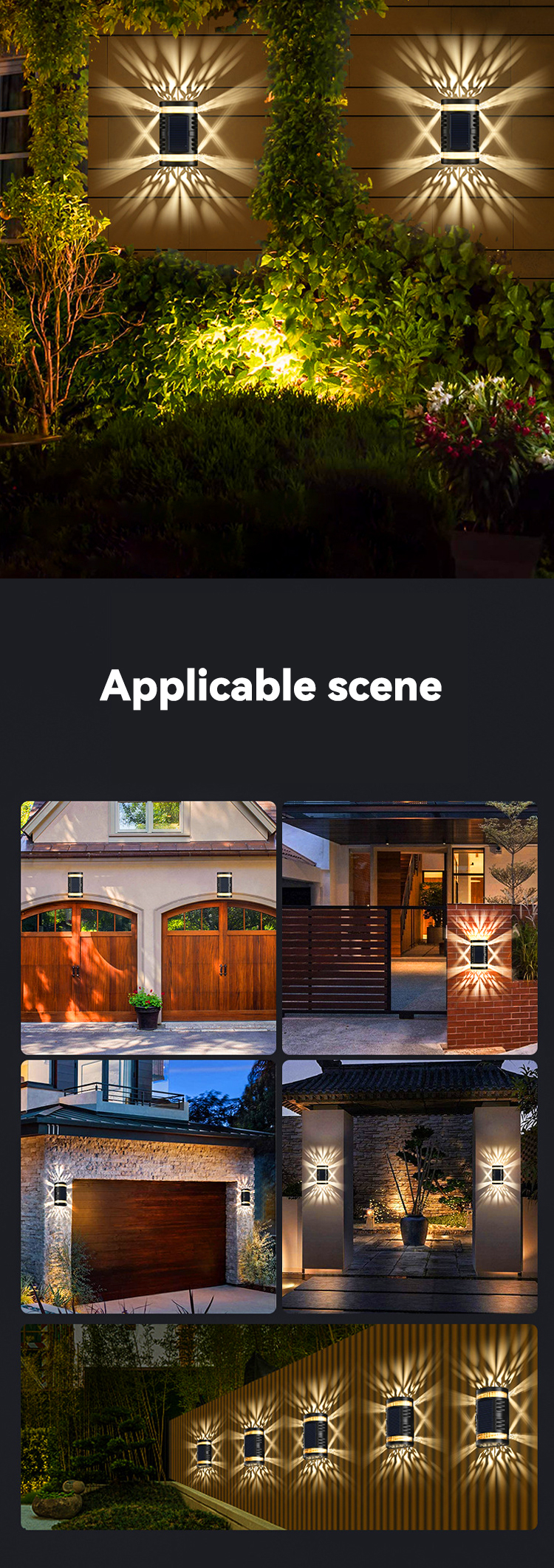 ·Product selling point: solar wall lamp, waterproof design, larger light-emitting area, better spot effect.