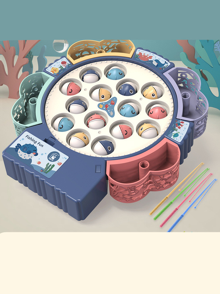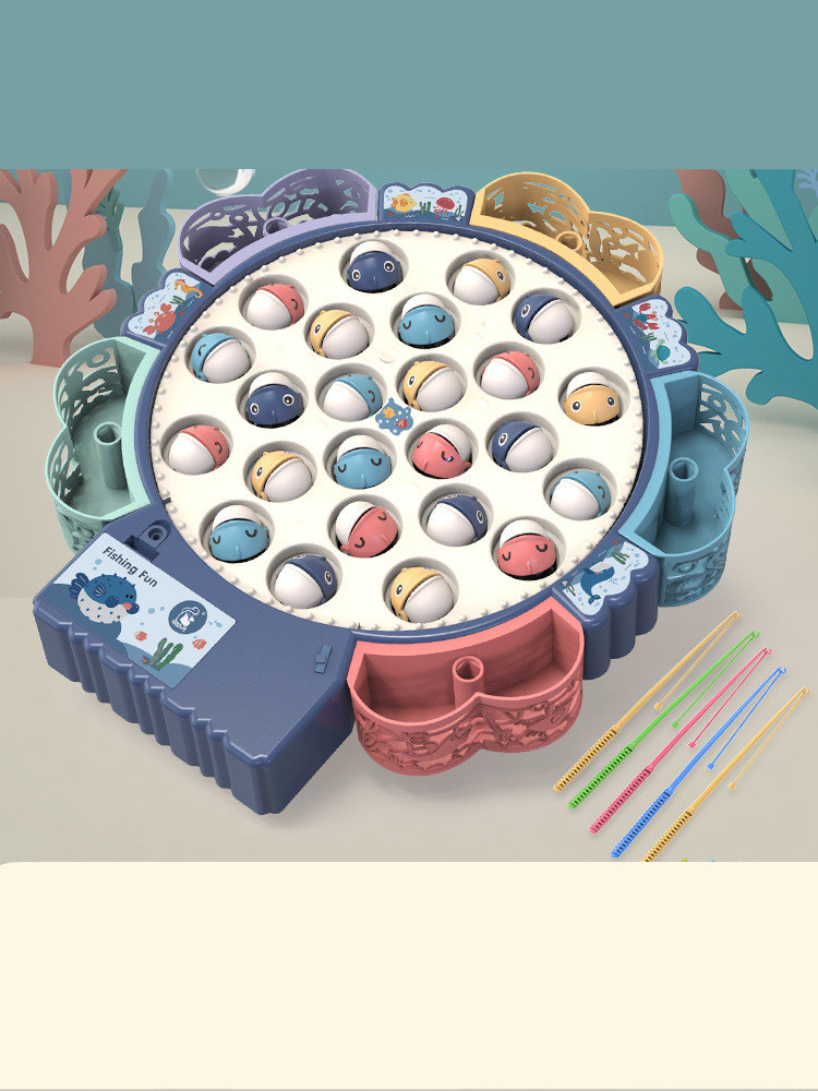 E style: Blue [Magnetic battery 1-4 years old] 34 dual-purpose fish + 9 rods + music (adjustable mute)