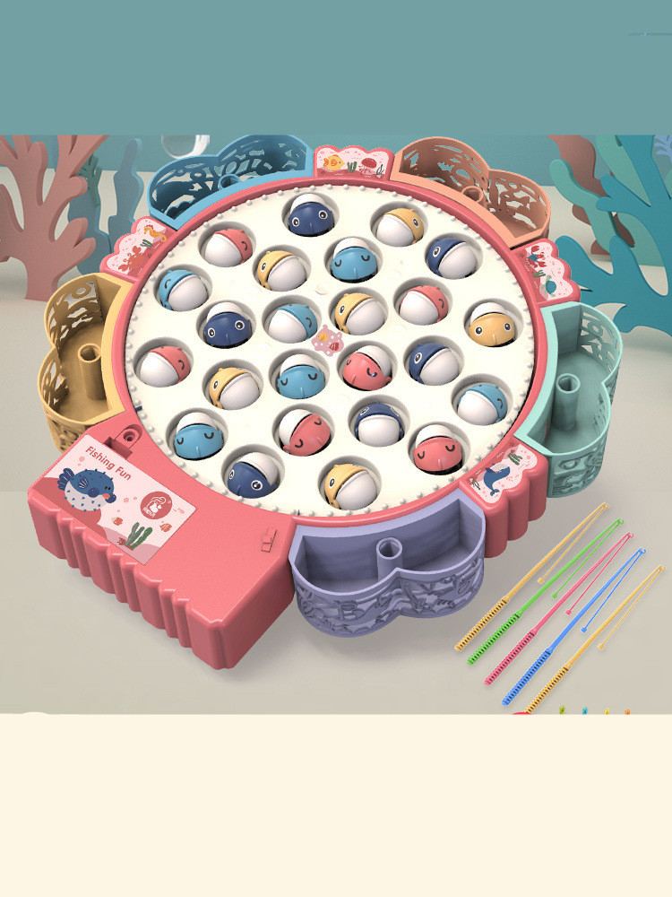 B style: pink [magnetic battery type 1-4 years old] 25 dual-purpose fish + 8 rods + music