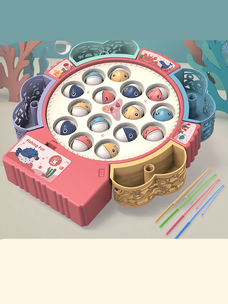 F style: pink [magnetic battery type 1-4 years old] 34 dual-purpose fish + 9 rods + music (adjustable mute)
