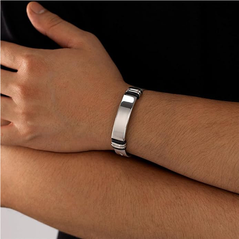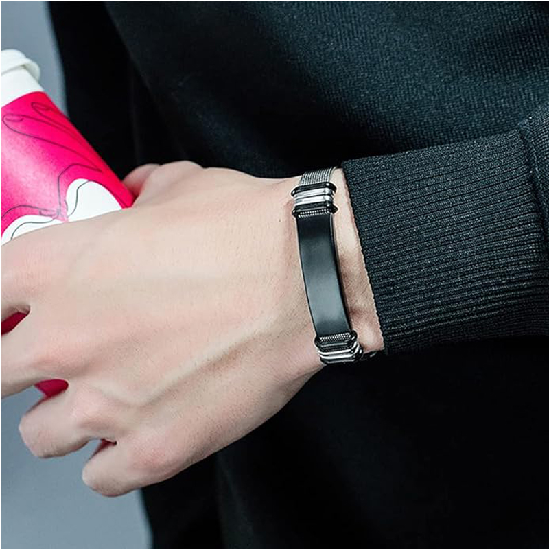 1.Material: Simple bracelet is made of high quality titanium steel. No allergic, No rust, No corrosion.