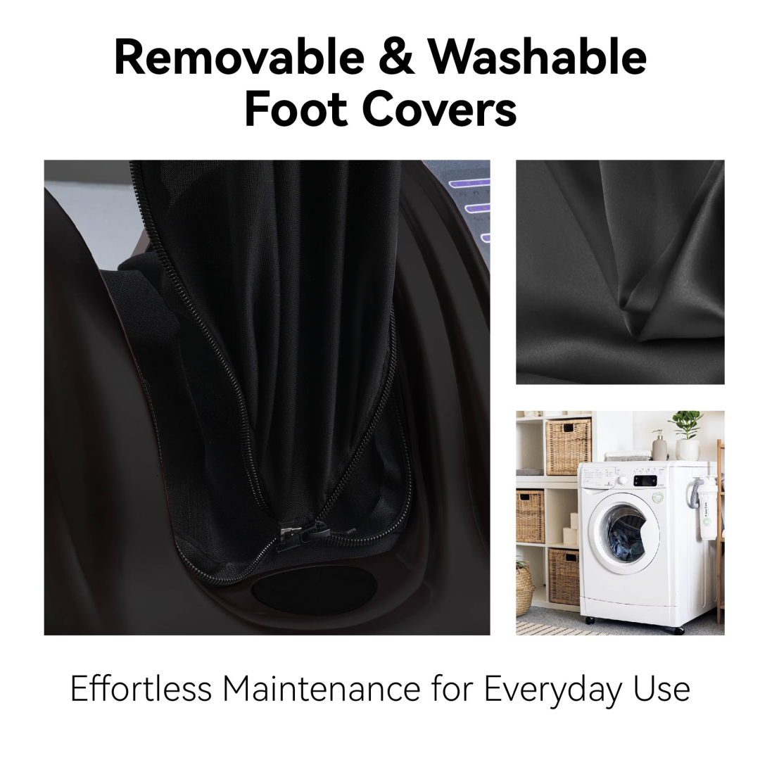 Operate the massager effortlessly using either the touch panel on the unit or the included remote control. Made with soft velour or advanced micro-suede fabric, the detachable foot covers are easy to clean. For any issues, including remote control problems or other requirements, feel free to contact us. We’re committed to providing excellent service.