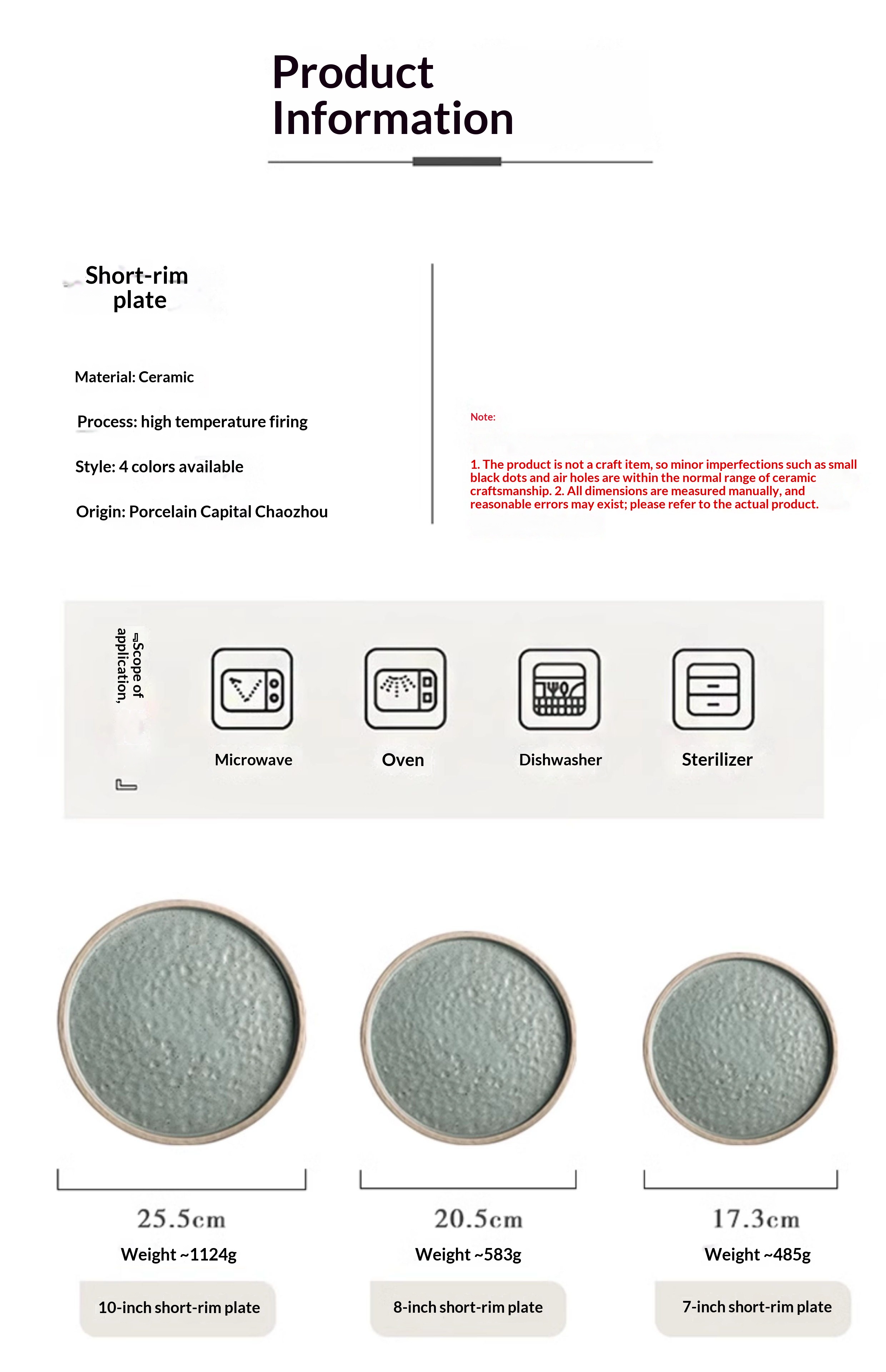 Color classification: 7-inch dwarf plate - fruit green, 7-inch dwarf plate - gray orchid, 7-inch dwarf plate - sesame white, 7-inch dwarf plate - silver brown, 8-inch dwarf plate - fruit green, 8-inch dwarf plate - gray orchid, 8-inch dwarf plate - sesame white, 8-inch dwarf plate - silver brown, 10 inch dwarf plate - fruit green, 10 inch dwarf plate - gray orchid, 10 inch dwarf plate - sesame white, 10 inch dwarf plate - silver brown