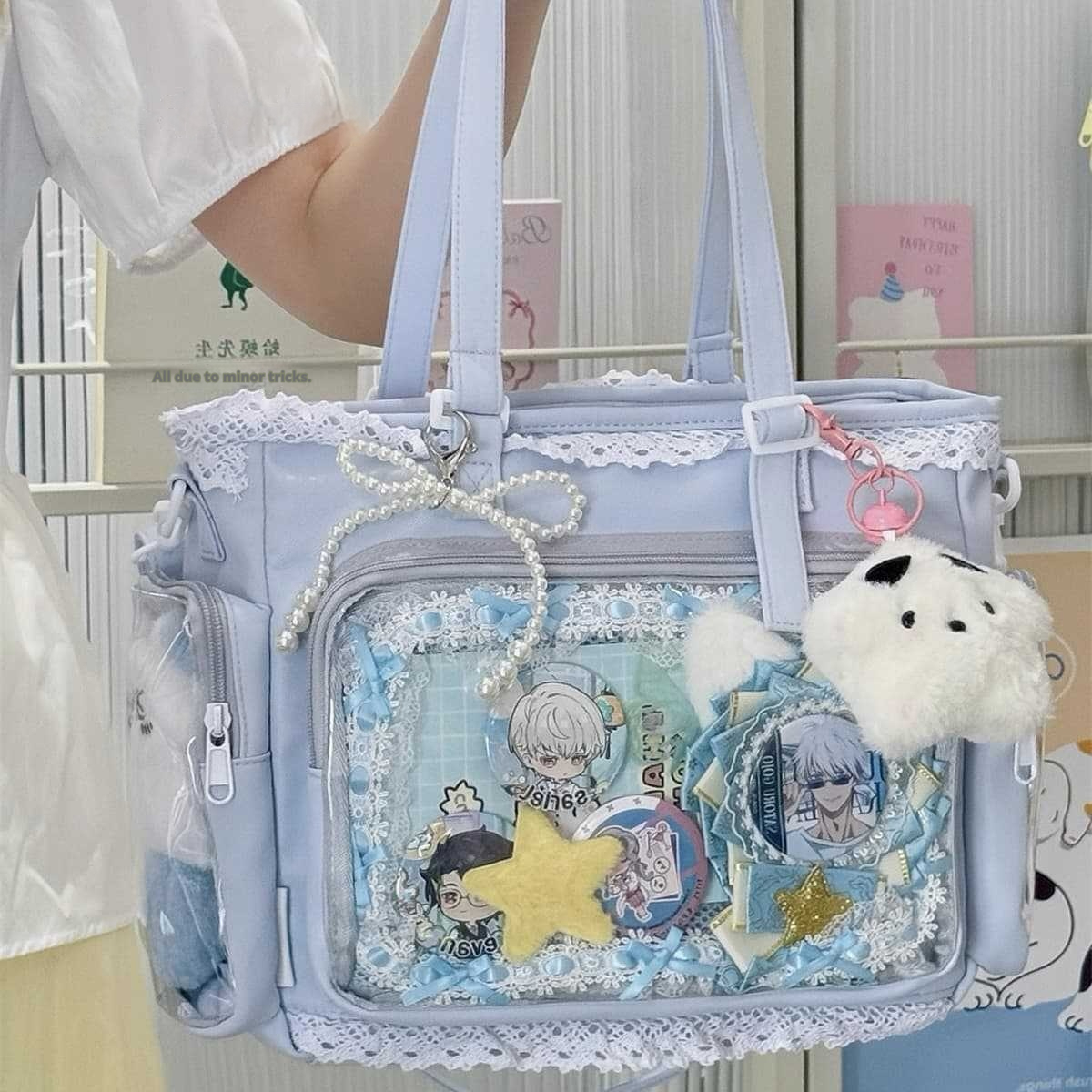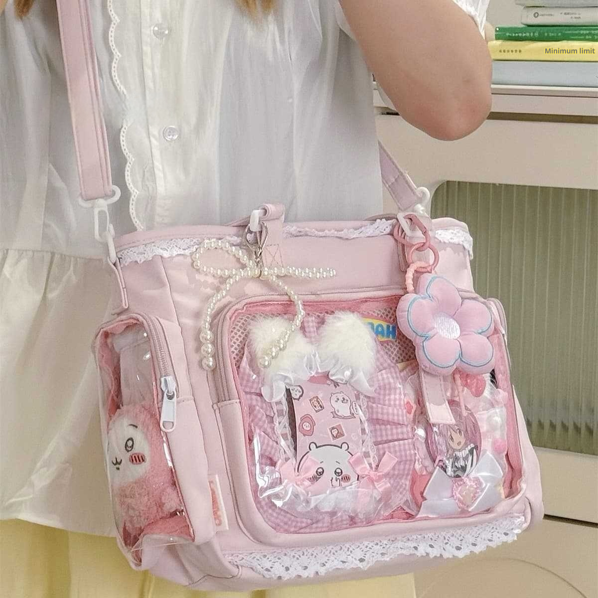 Color: transparent bar tie board Lace cartoon backpack-pink, transparent bar tie board Lace cartoon backpack-yellow
