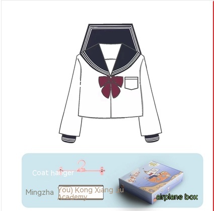 Style J: White three-book long sleeve top + bow tie hanger name tie