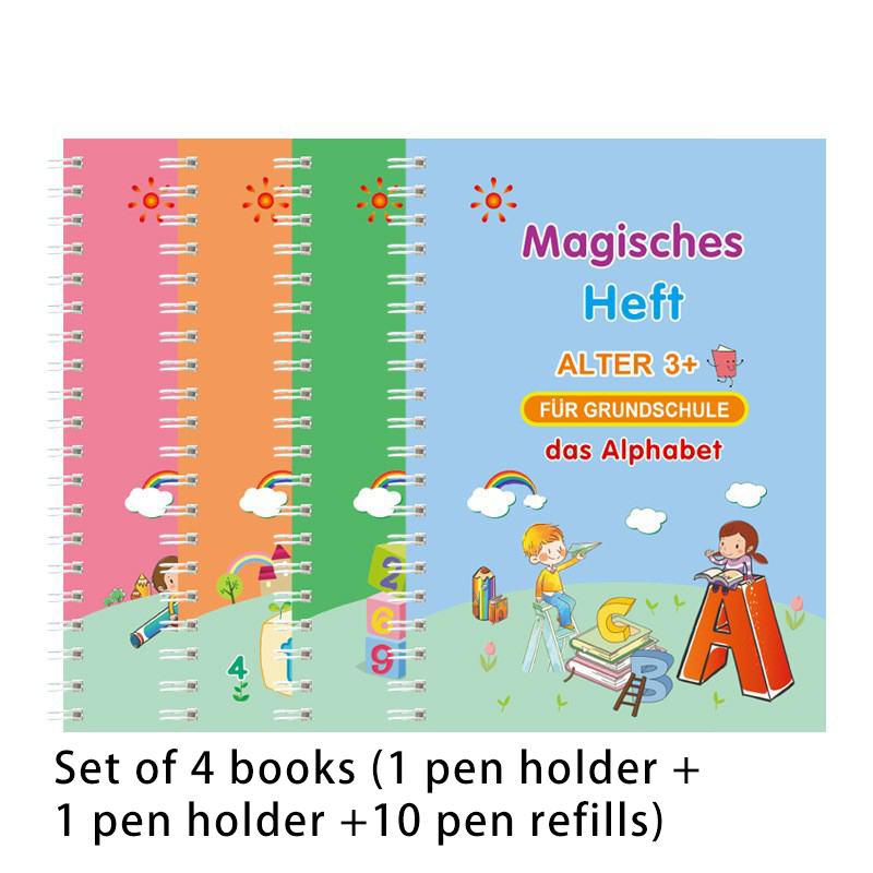 A set of 4 calligraphy sheets +1 pen holder +1 pen holder +5 pen refills (German)