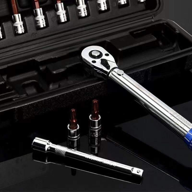 Product information:Type: torque wrench Torque range: 2-24 Ratchet head size: 1/4 Model: 15-piece torque wrench set