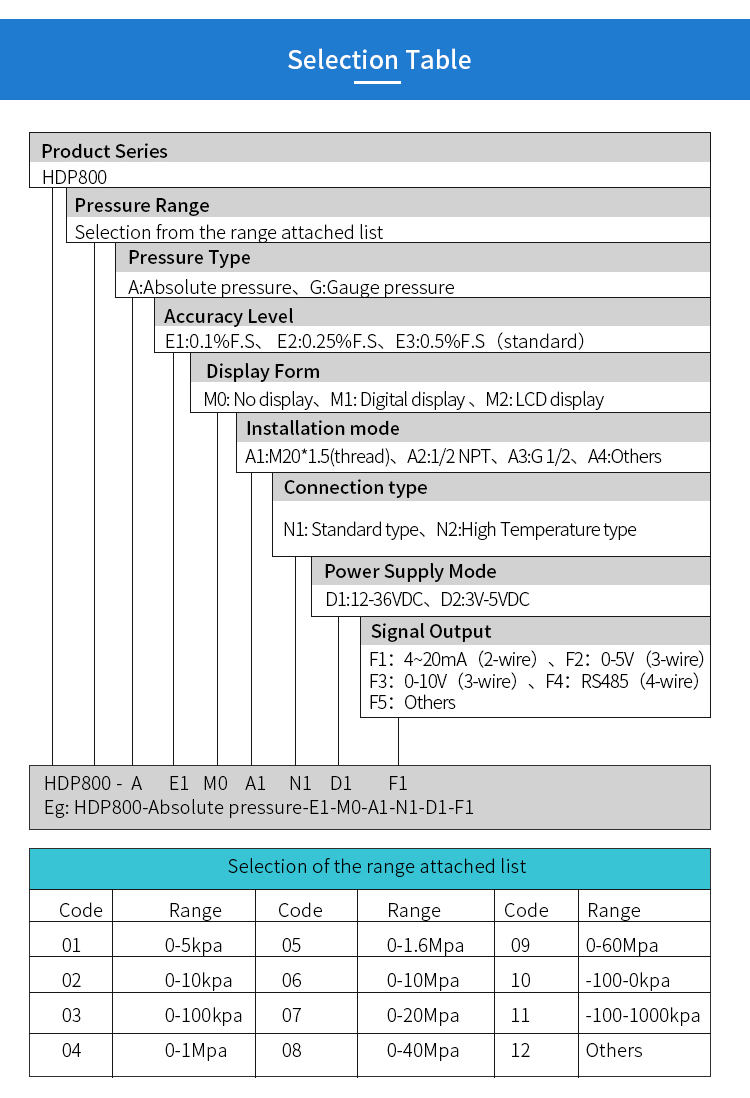 Accuracy level 0.5%FS (default), 0.25%FS, 0.2%FS