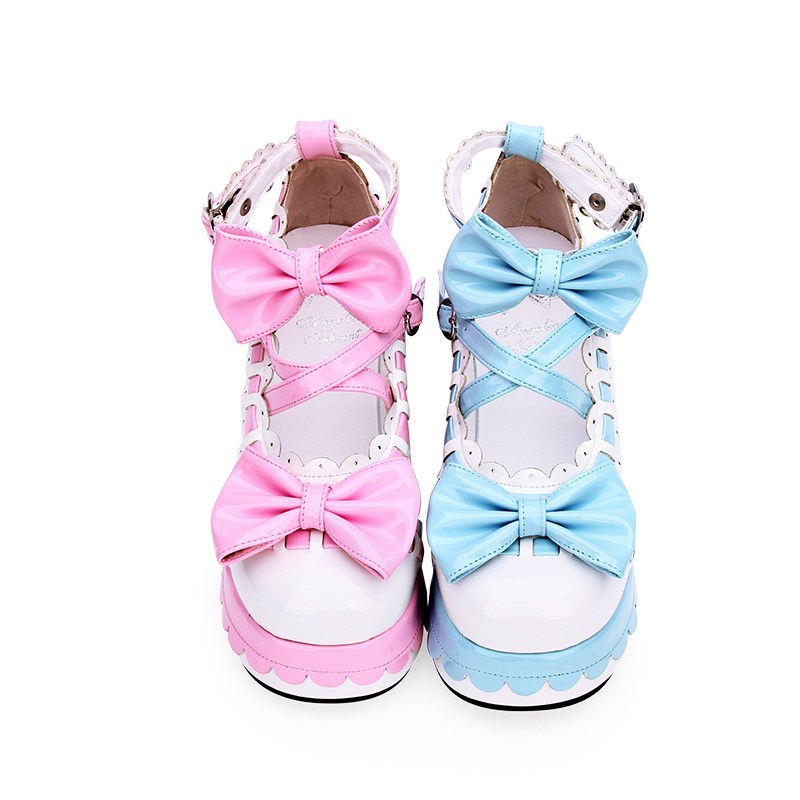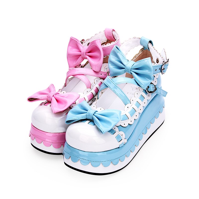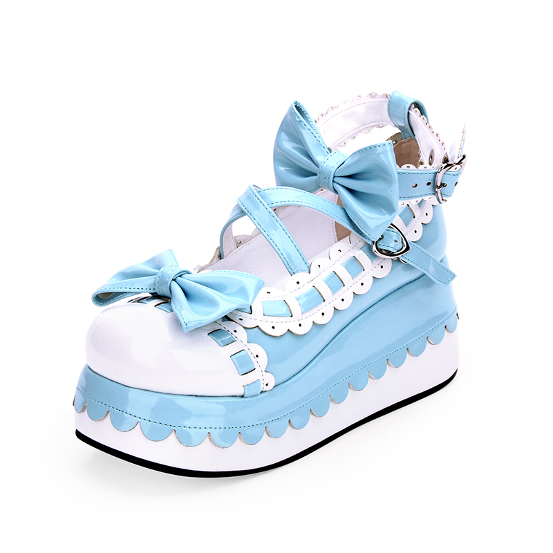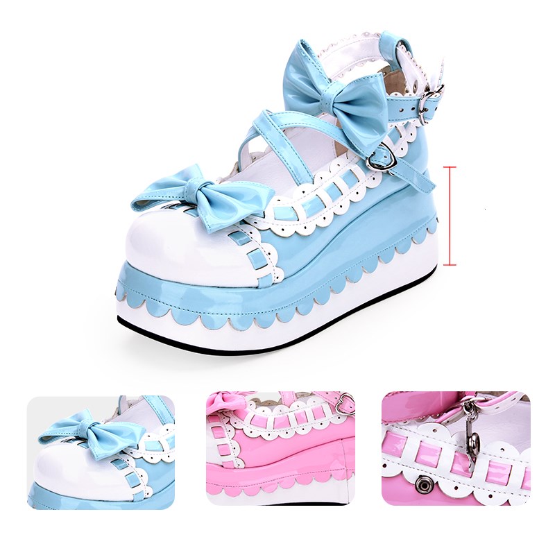 Style: Japanese LolitaItem No.: 8863Color: pink + blueUpper: Patent leatherInside: PUSize: 33-47Heel height: 7CM