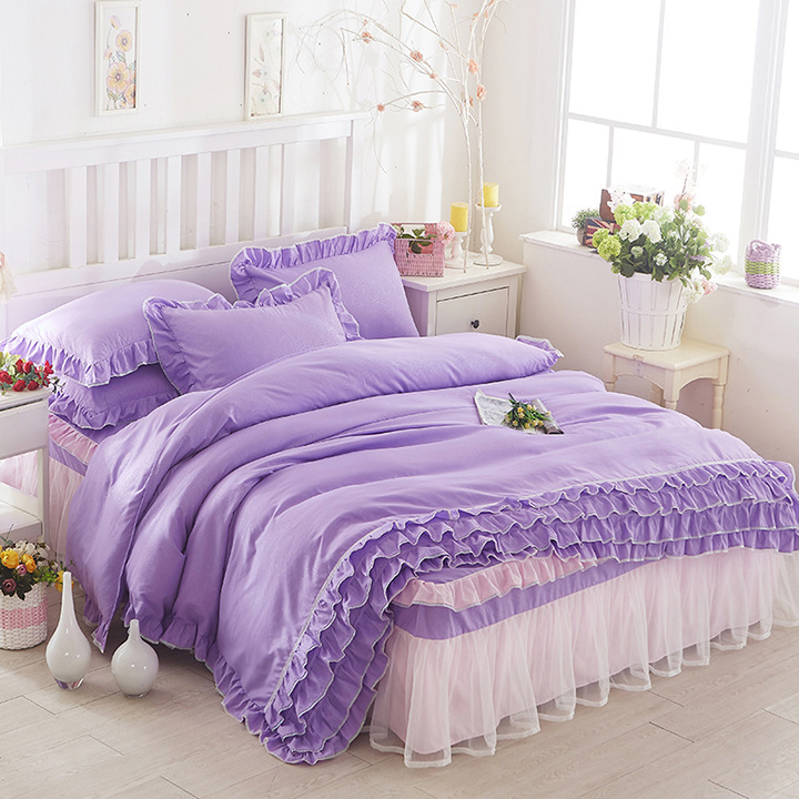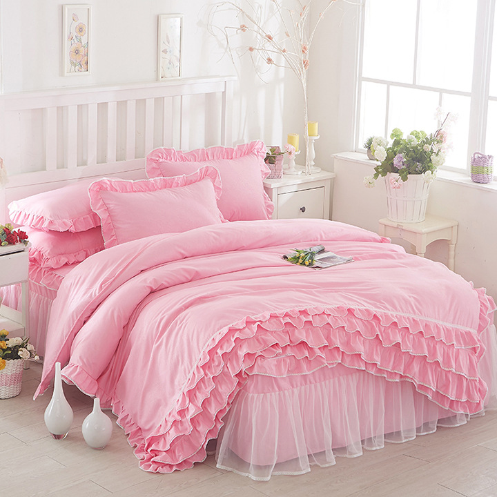 Princess Lace Bed Skirt-style Bedspread Style Four-piece Solid Color Lace