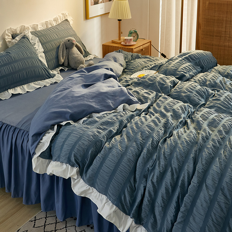 E:Quilt cover 200*230 bed skirt 150*200 four-piece suit