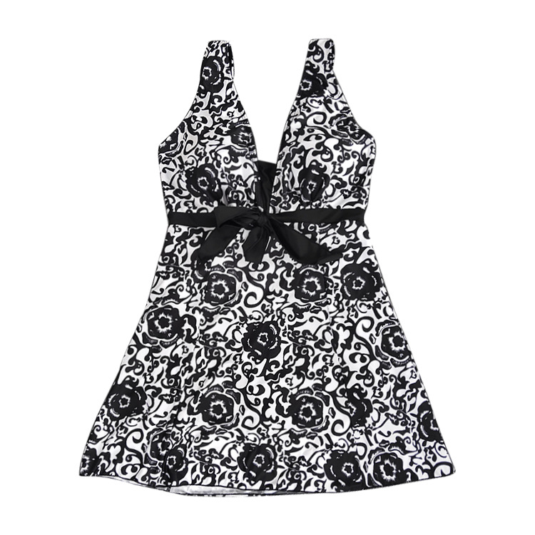 Print plus-size skirt split swimsuit