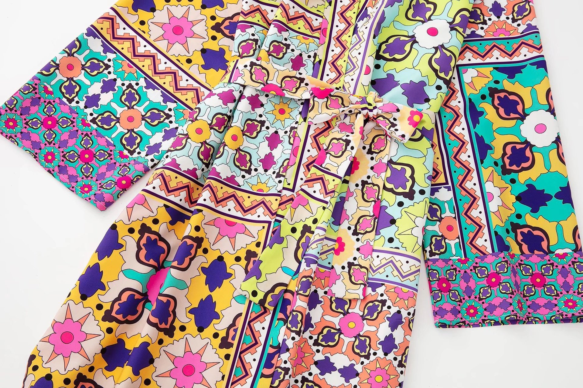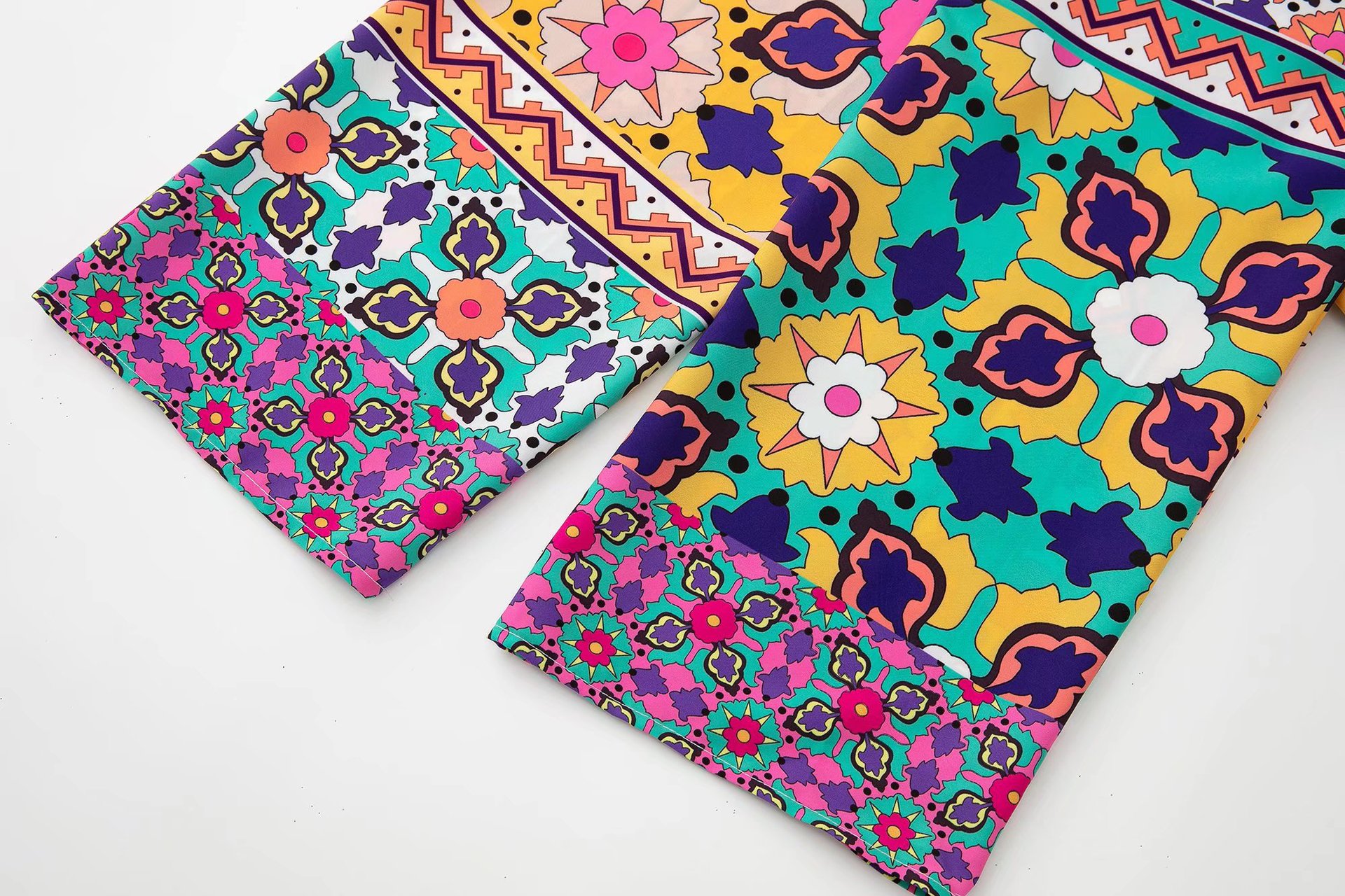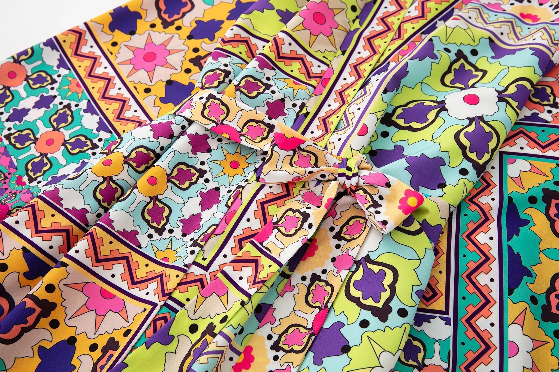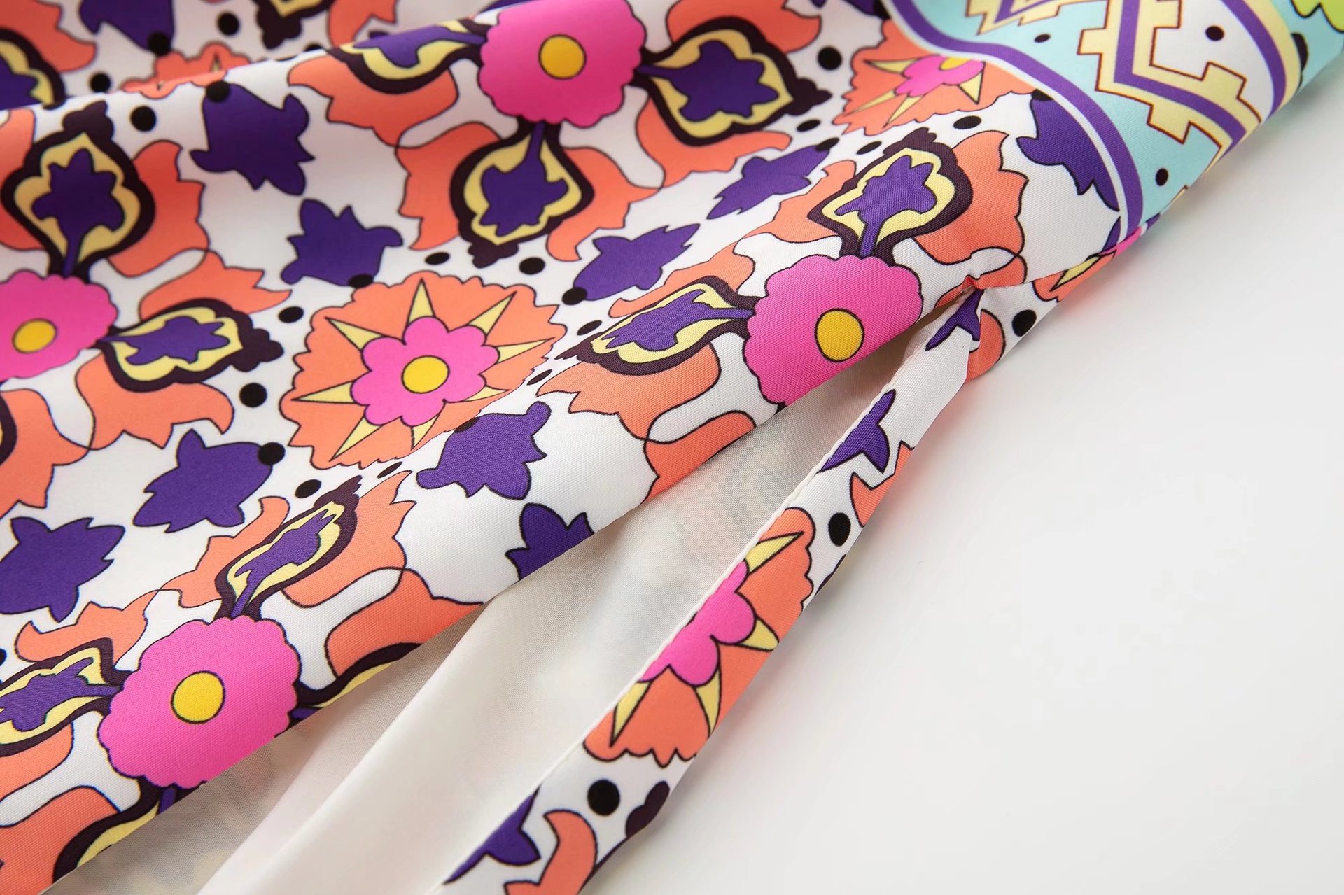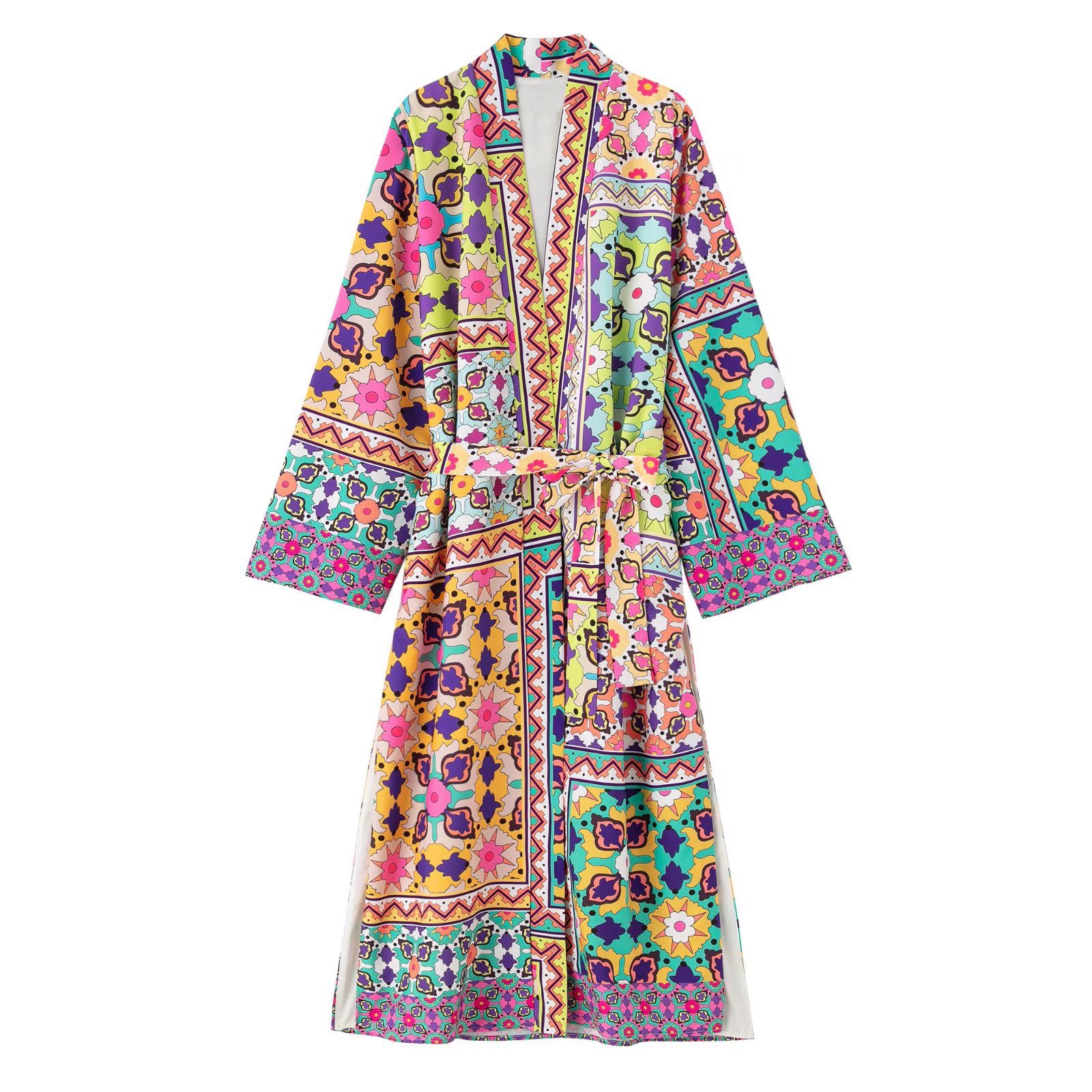 Color: printed coat, printed trousers