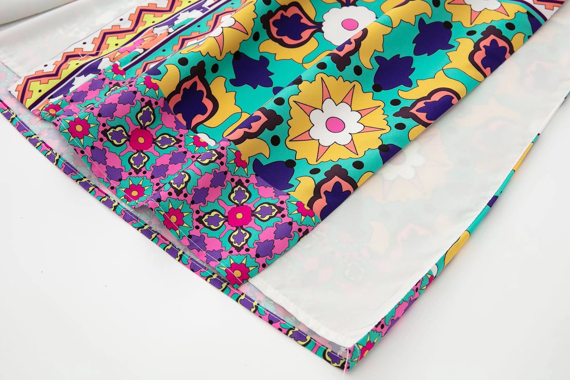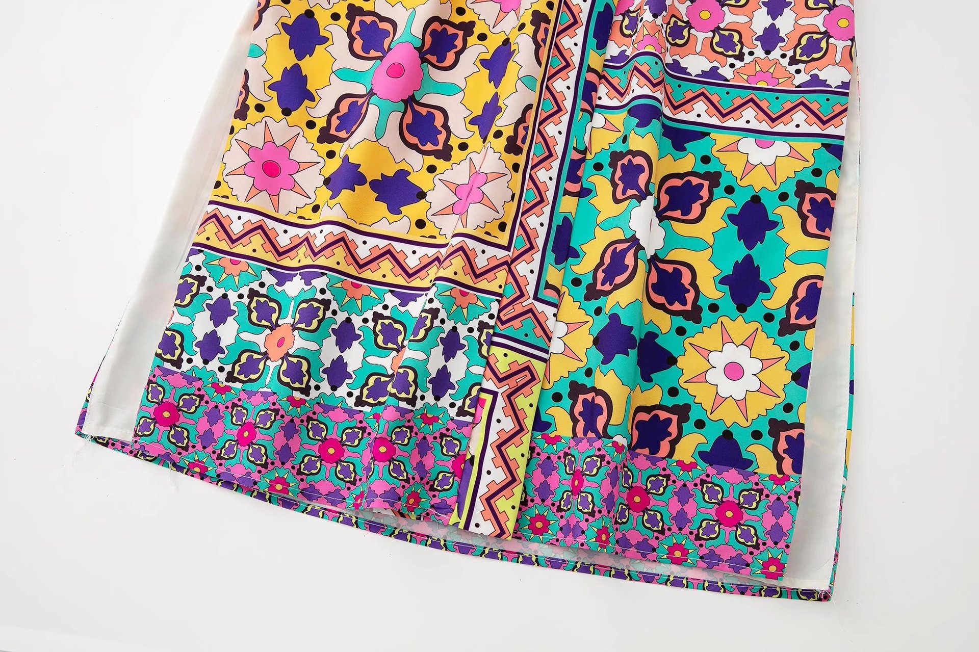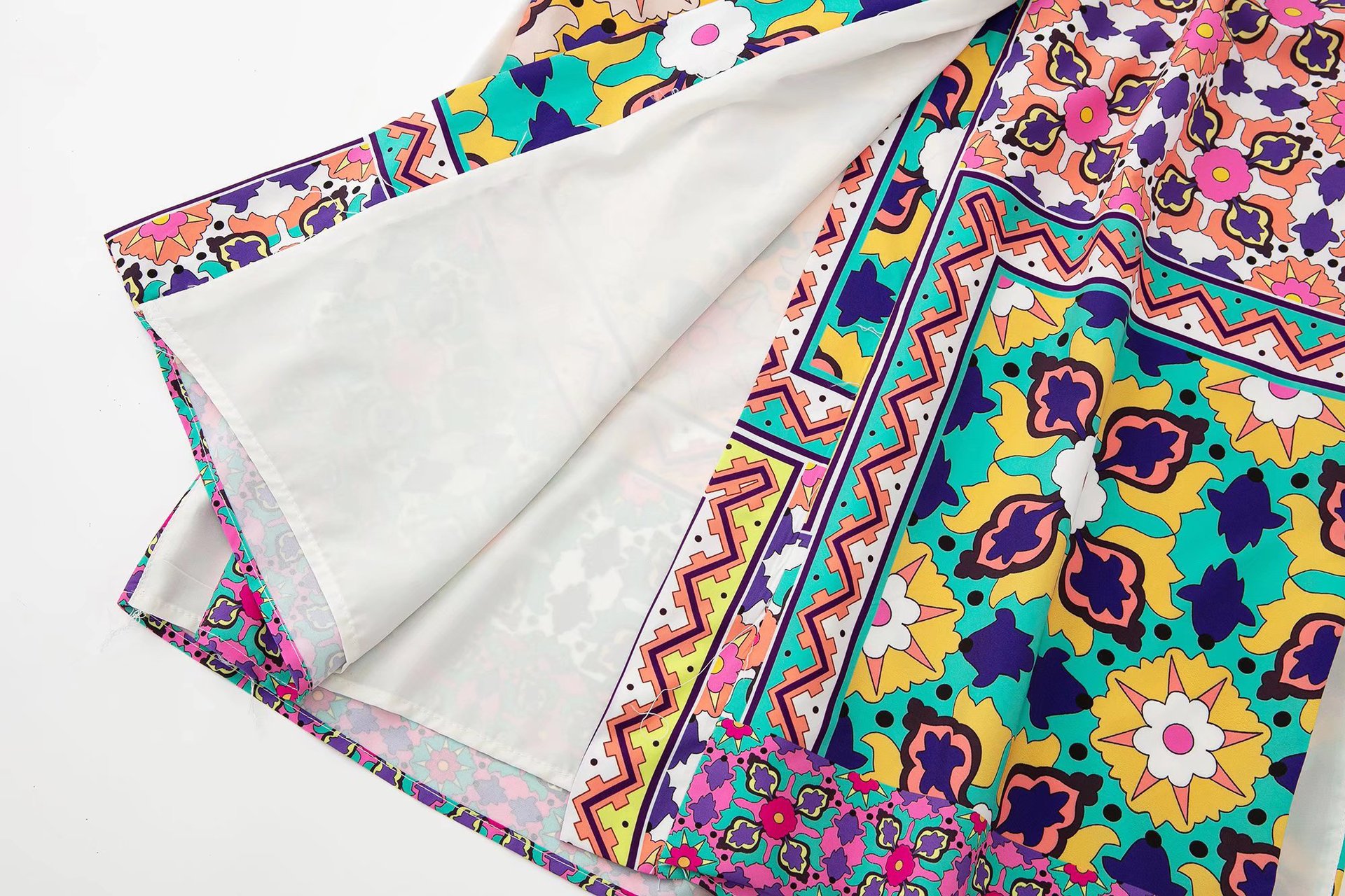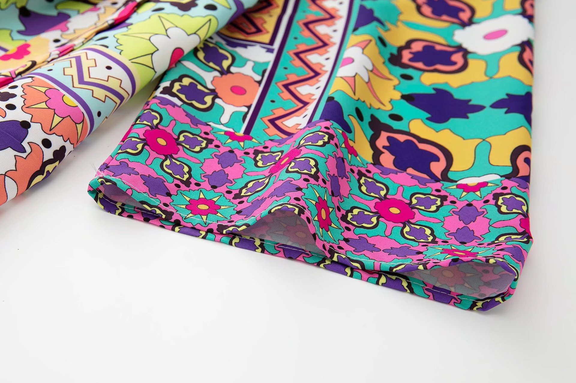Color: printed coat, printed trousers
