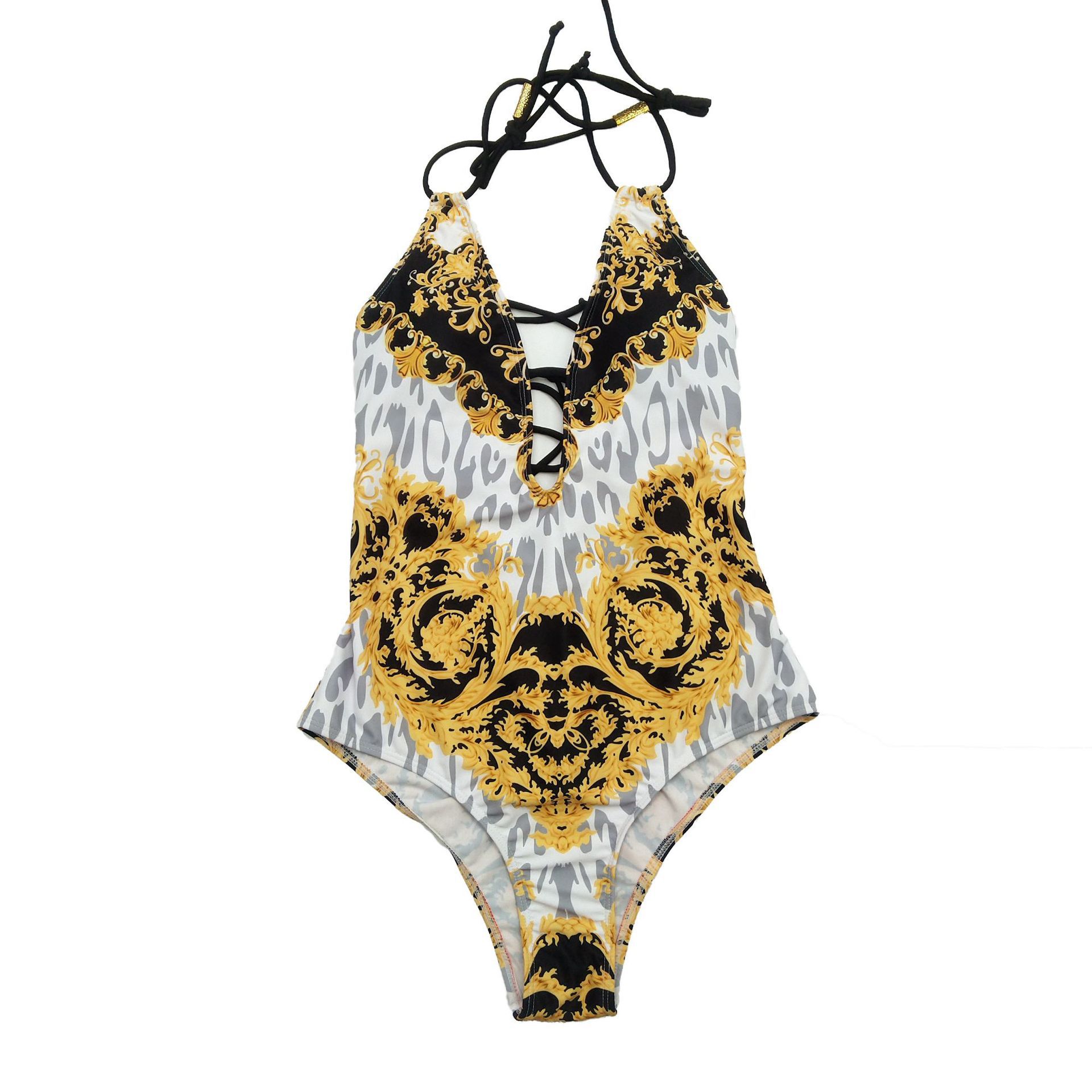 Printed bikini one-piece swimsuit