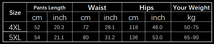 Size :4XL weight 50-75kg 5XL weight 60-90kg