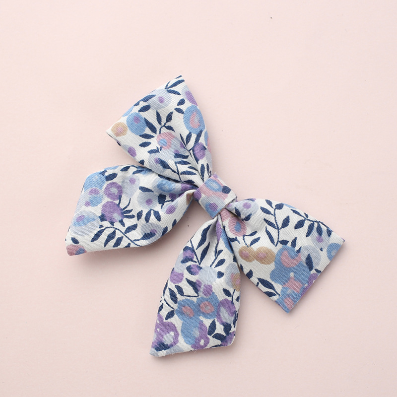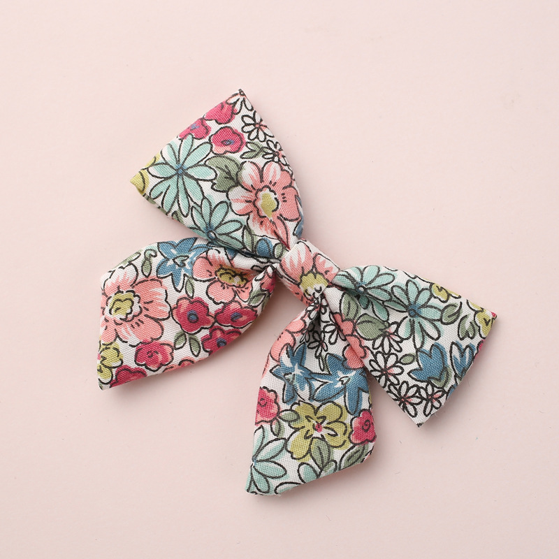 New spring cotton printed bow fabric clip rural style children's hair clip princess hair accessoriesBow size: 8.5 * 5.5 cm