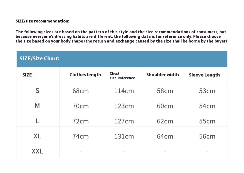 Note: 1. Asian sizes are 1 to 2 sizes smaller than European and American people. Choose the larger size if your size between two sizes. Please allow 2-3cm differences due to manual measurement. 2. Please check the size chart carefully before you buy the item, if you don't know how to choose size, please contact our customer service. 3.As you know, the different computers display colors differently, the color of the actual item may vary slightly from the following images.