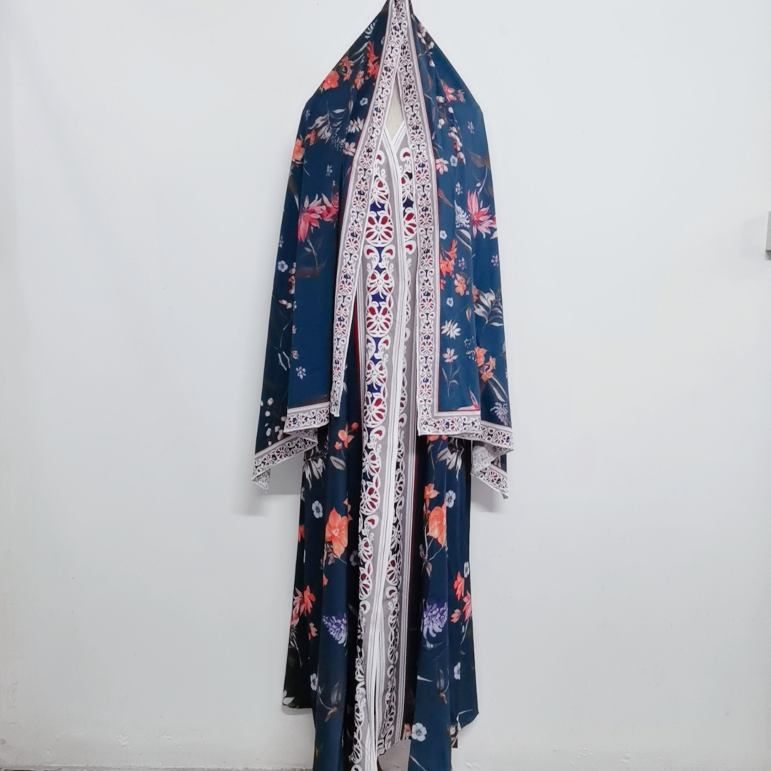 Colors: White (Cardigan + Headscarf), Blue (Cardigan + Headscarf), Brown (Cardigan + Headscarf)