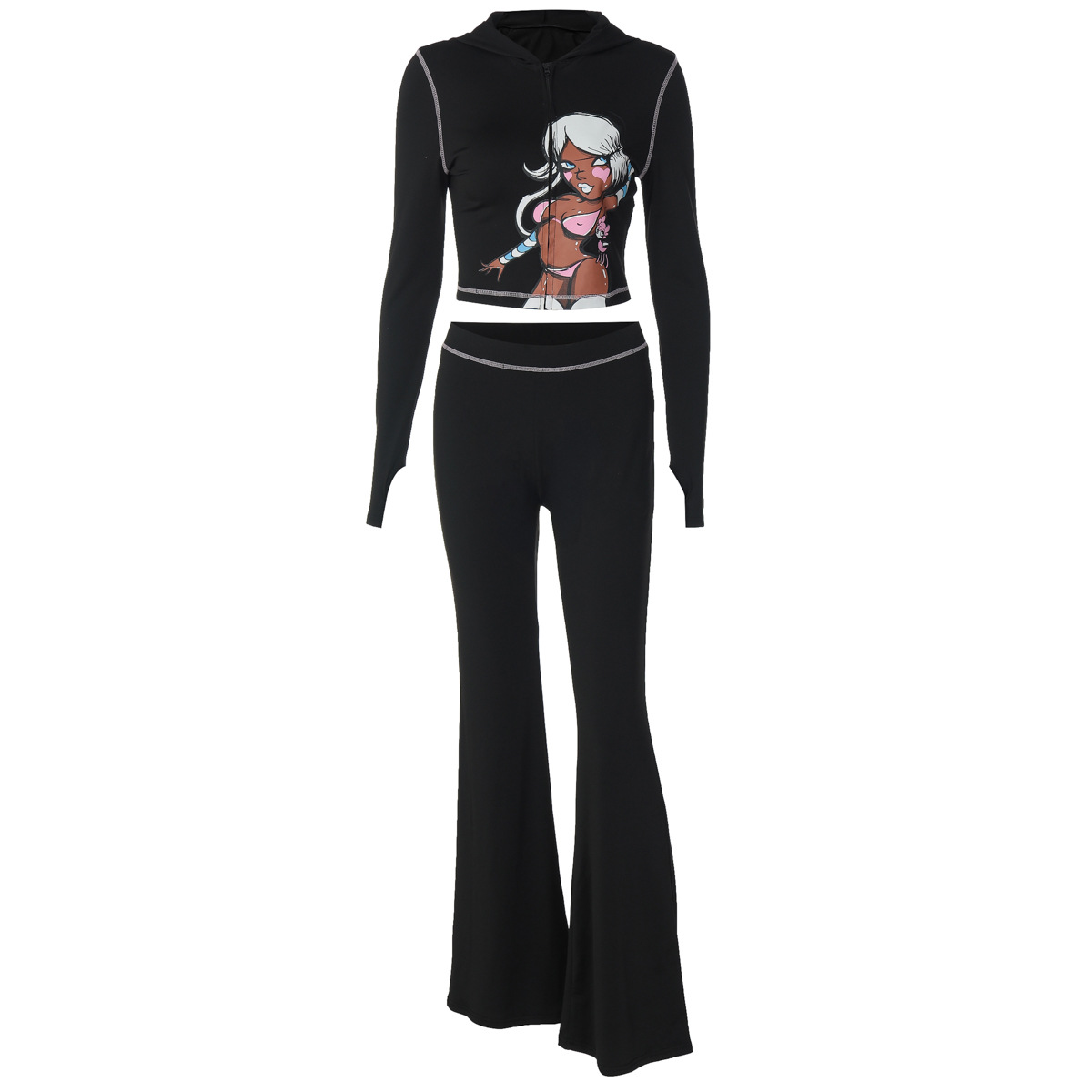 Printed Casual Sporty Hooded Long Sleeve And Pants Set