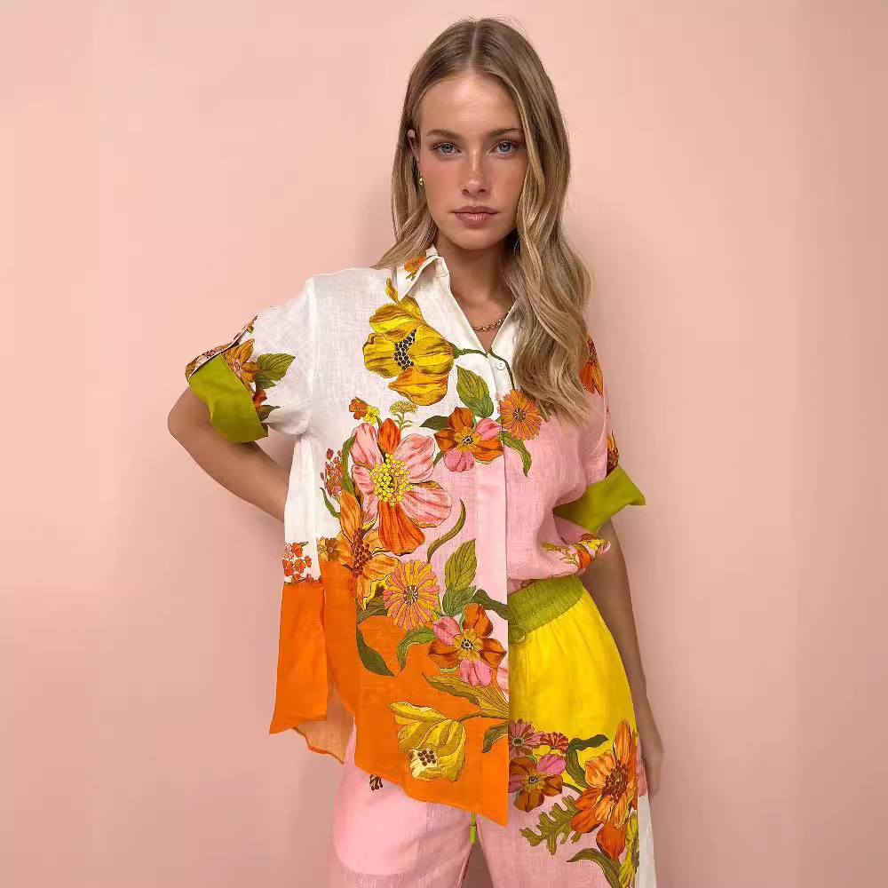 Color: top, trousers, two-piece suit