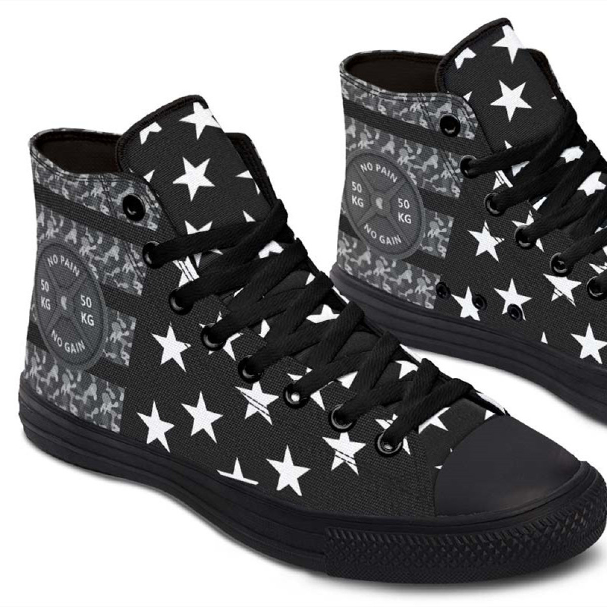 • Hand and custom printed high-tops