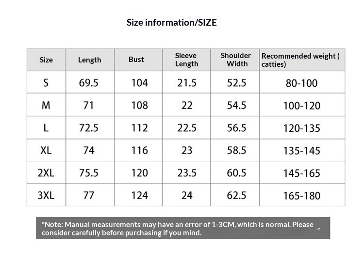 Sizes: S, M, L, XL, XXL, 3XL