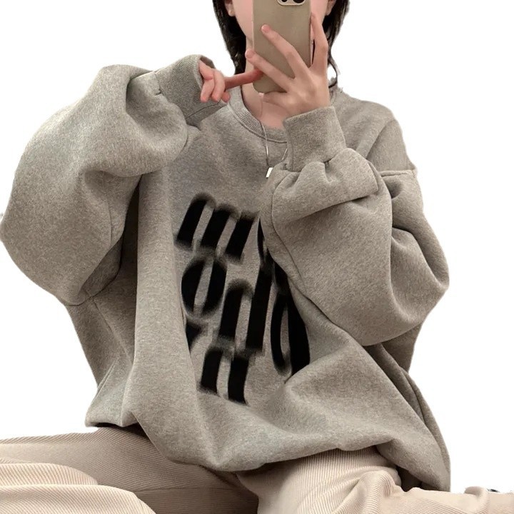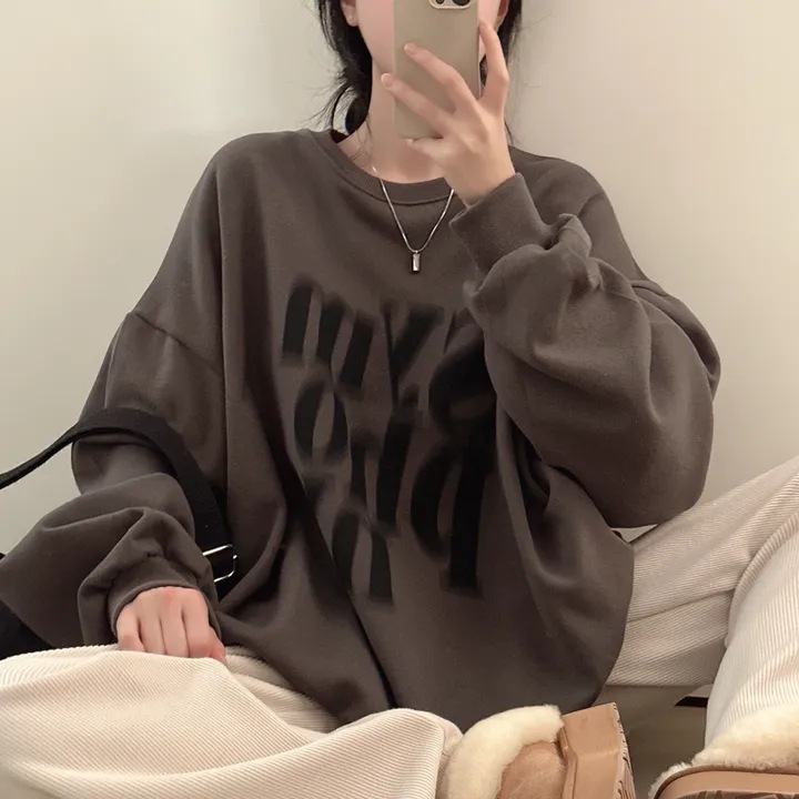 Printed Design Contrast Color Loose Casual Long Sleeves Pullover Sweater