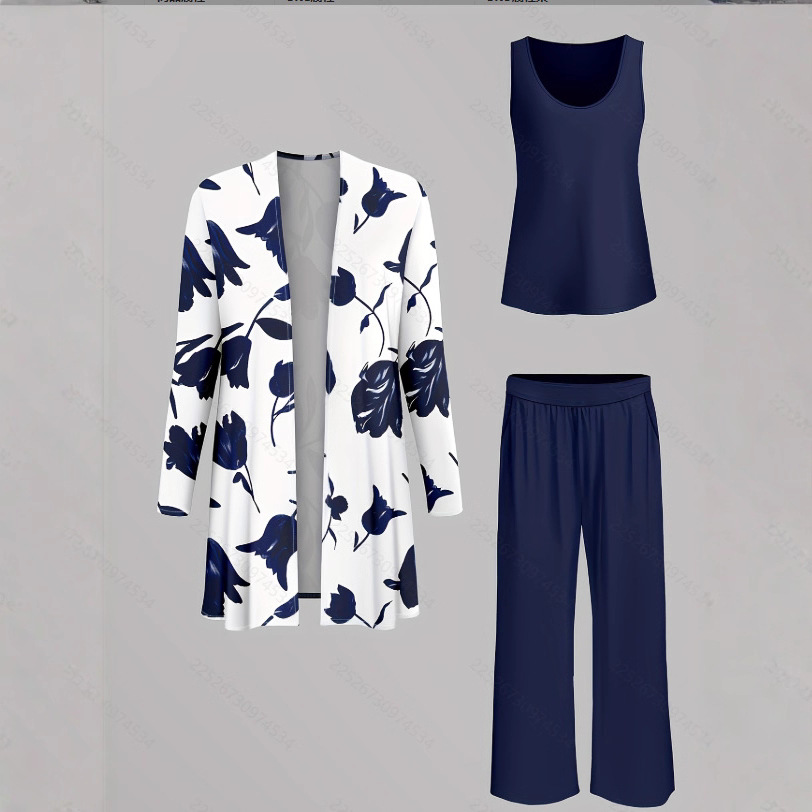 Printed Design Five-quarter Sleeve Wide-leg Pants Three-piece Set